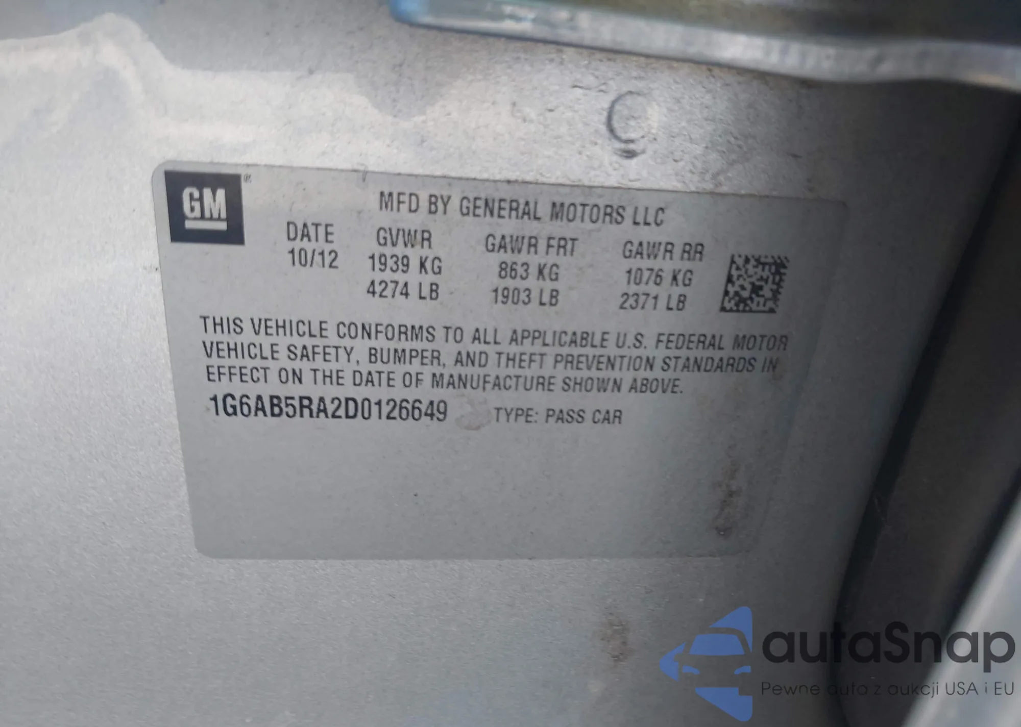 VIN: 1G6AB5RA2D0126649