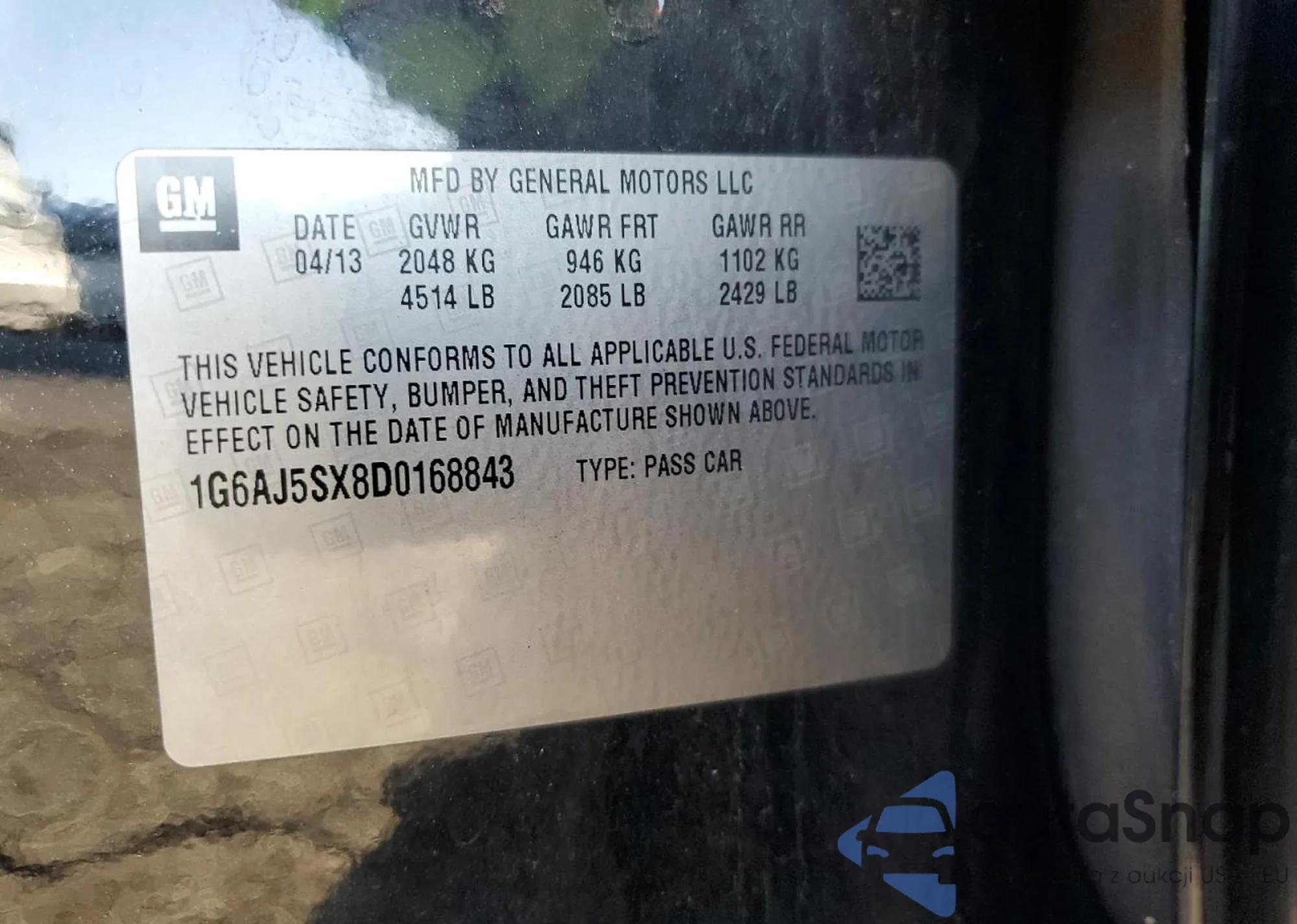 VIN: 1G6AJ5SX8D0168843