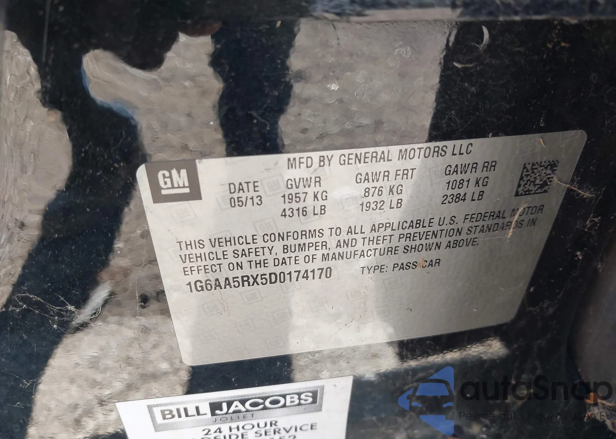 VIN: 1G6AA5RX5D0174170