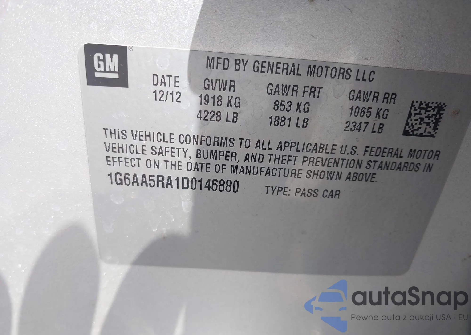 VIN: 1G6AA5RA1D0146880