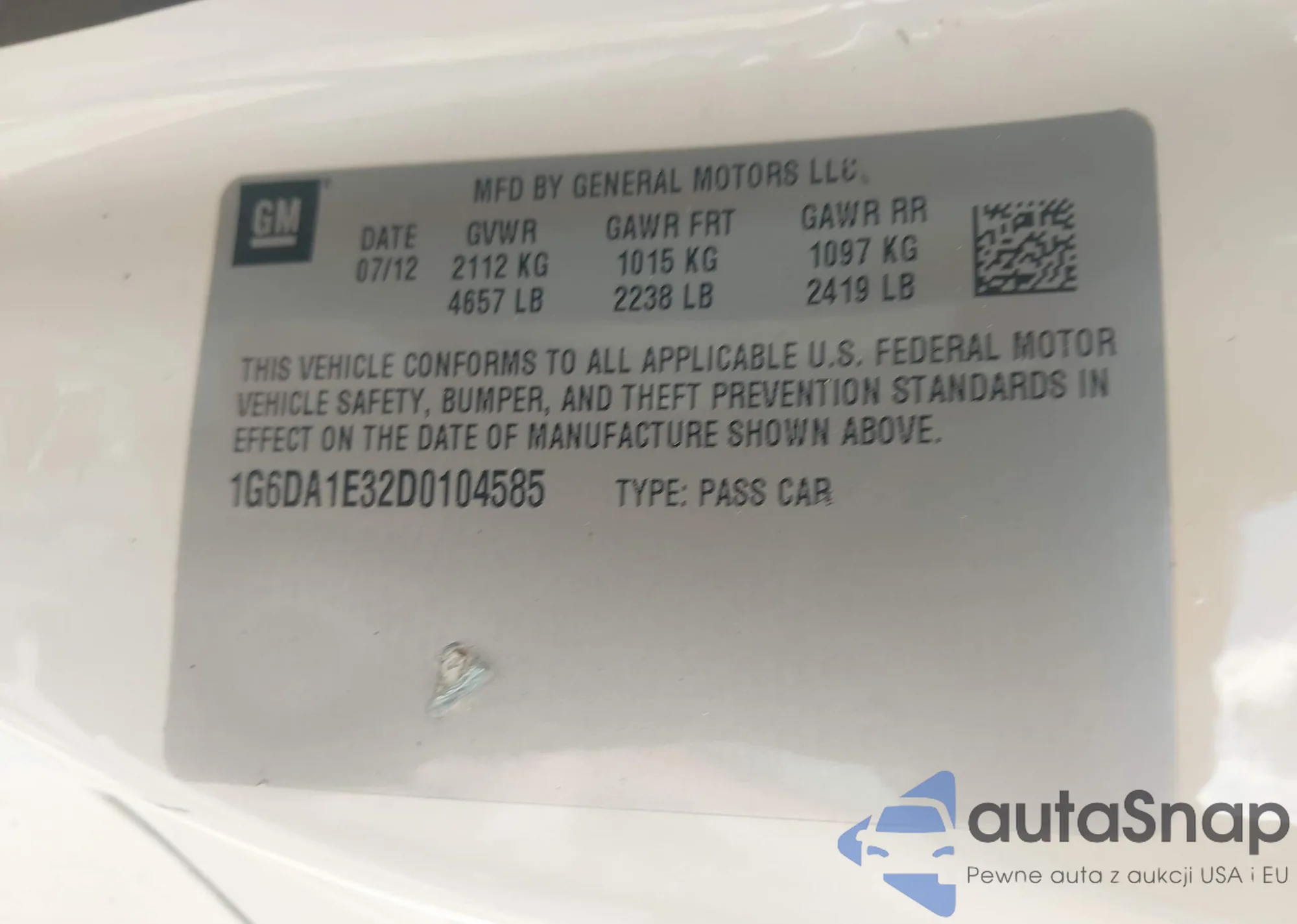 VIN: 1G6DA1E32D0104585