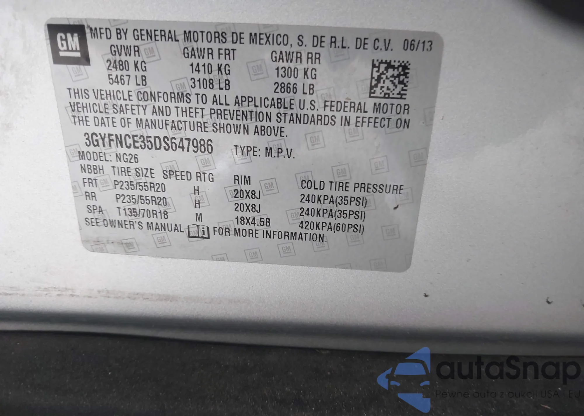 VIN: 3GYFNCE35DS647986