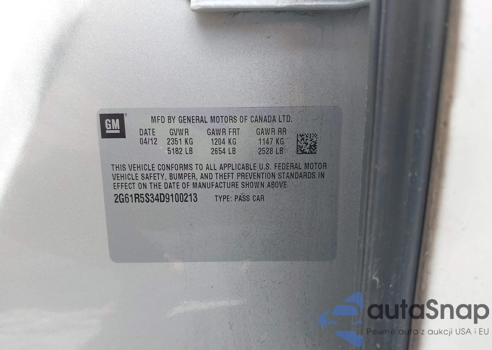 VIN: 2G61R5S34D9100213