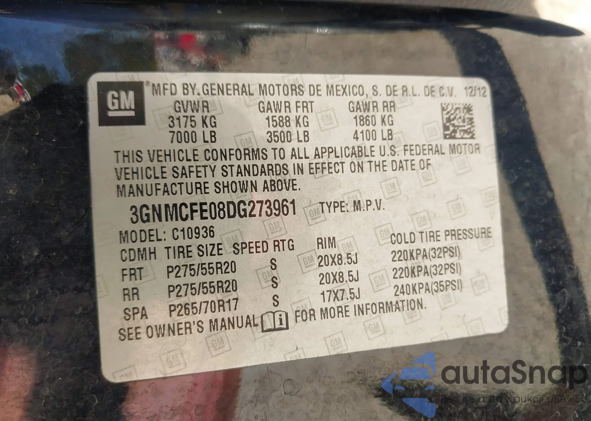 Samochód Chevrolet Avalanche 2013 (VIN 3GNMCFE08DG273961) nie był wcześniej licytowany. Dokumenty są czyste, przebieg odpowiada lub jest niższy niż średnia rynku. Sprzedaje go firma ubezpieczeniowa – polecamy zakup. Dostawa do portu zajmie ok. 6–8 tygodni.