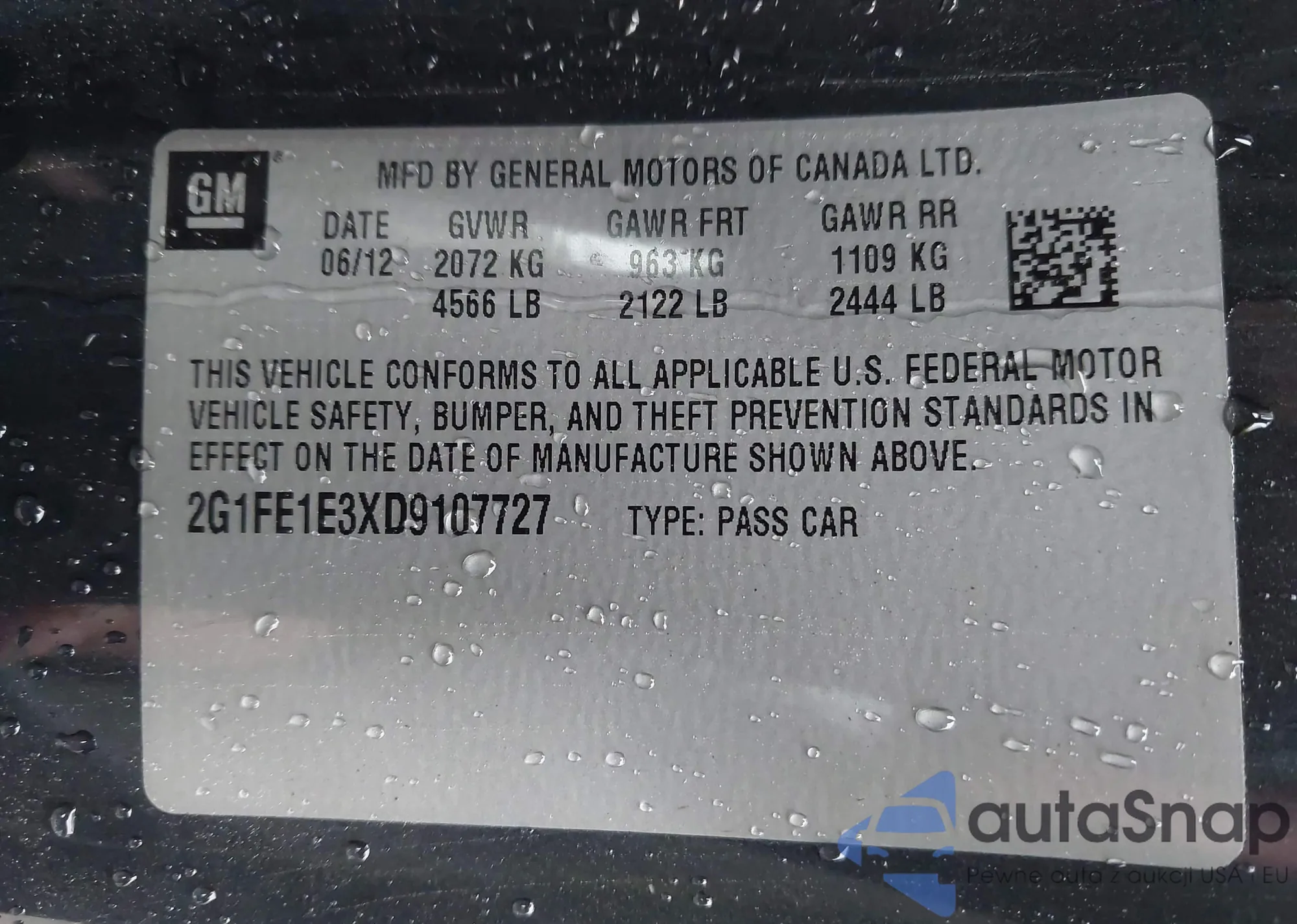 Samochód Chevrolet Camaro 2013 (VIN 2G1FE1E3XD9107727) nie był wcześniej licytowany. Dokumenty są czyste, przebieg odpowiada lub jest niższy niż średnia rynku. Sprzedaje go firma ubezpieczeniowa – polecamy zakup. Dostawa do portu zajmie ok. 6–8 tygodni.
