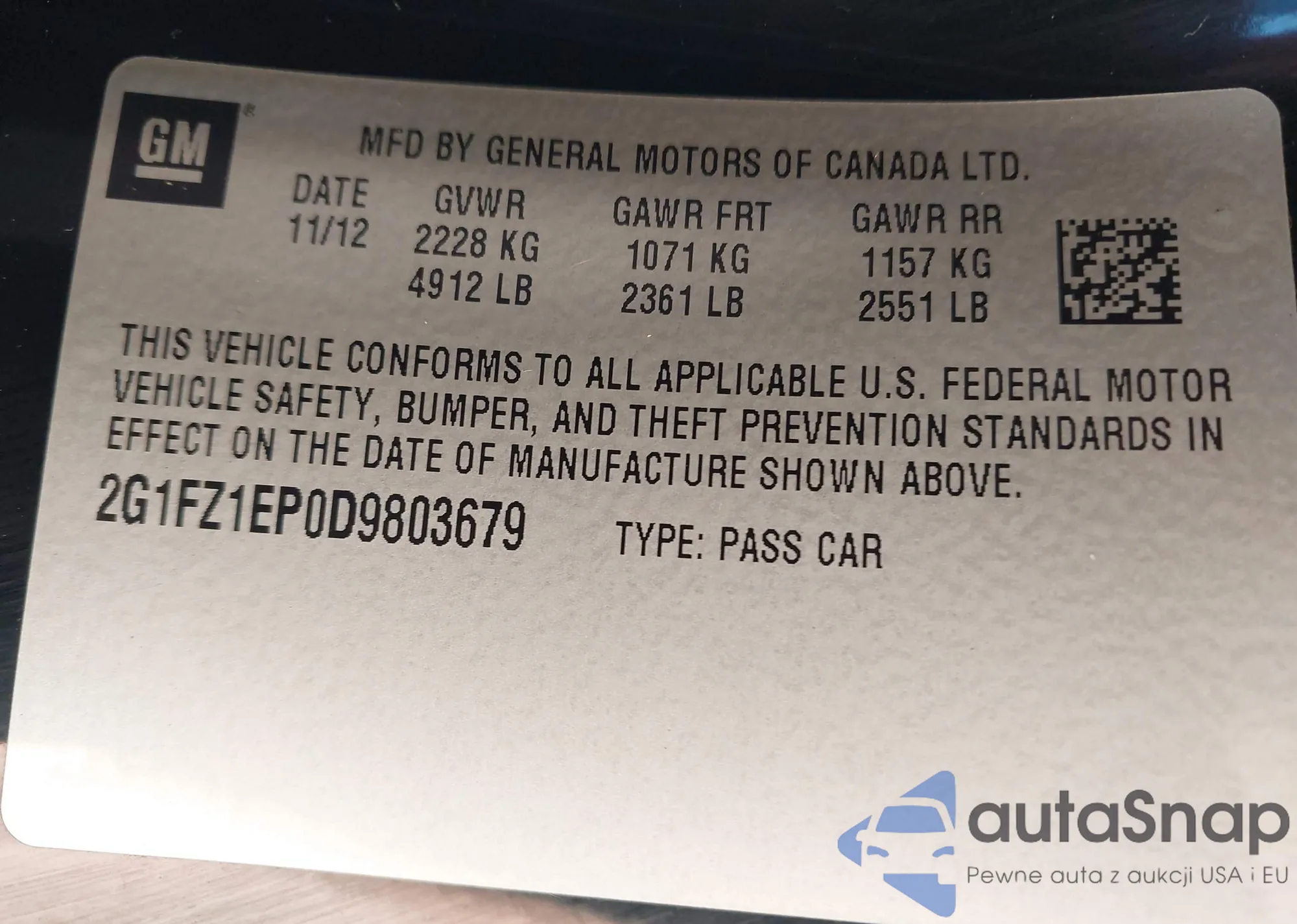 VIN: 2G1FZ1EP0D9803679