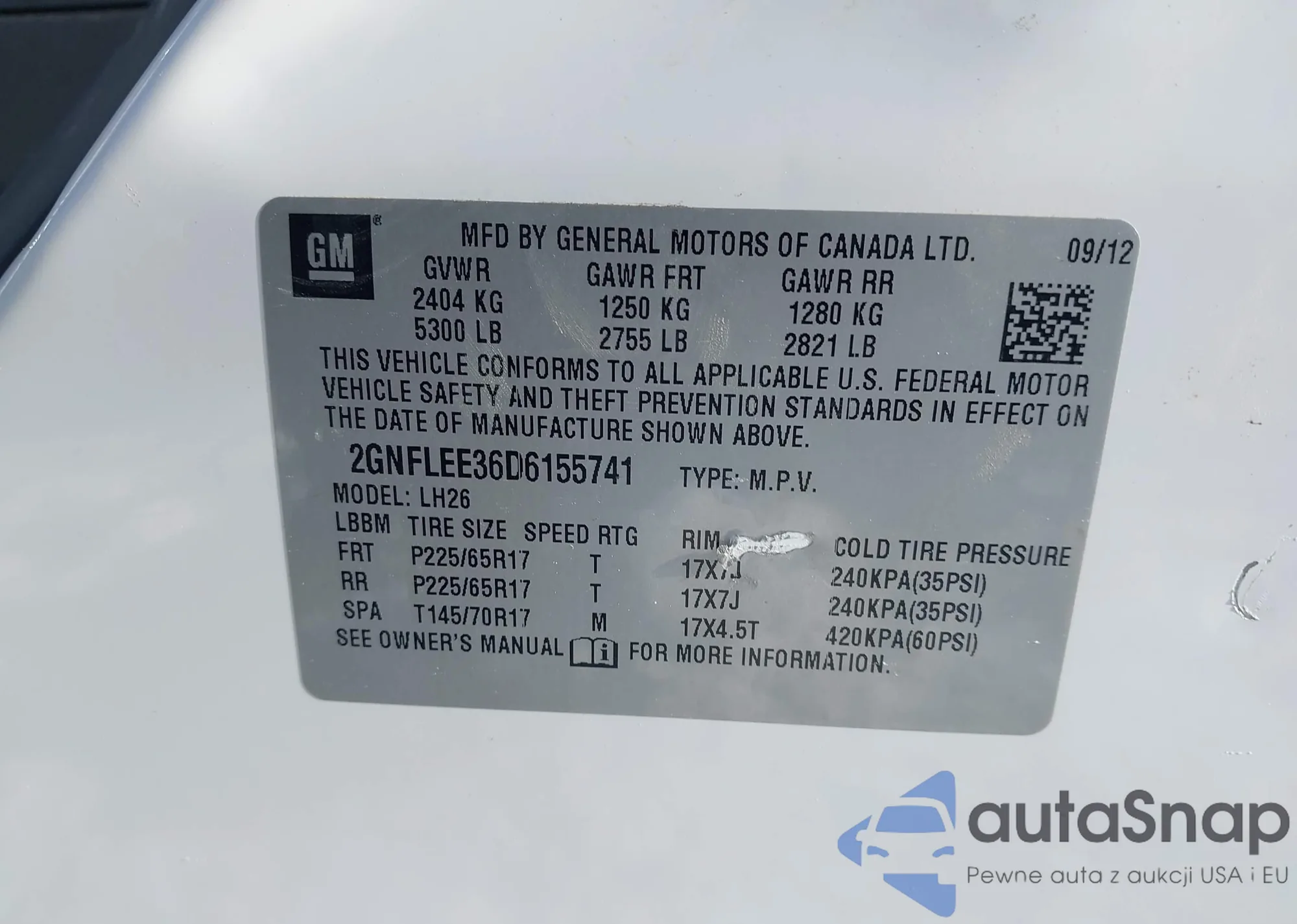 Samochód Chevrolet Equinox 2013 (VIN 2GNFLEE36D6155741) nie był wcześniej licytowany. Dokumenty są czyste, przebieg odpowiada lub jest niższy niż średnia rynku. Sprzedaje go firma ubezpieczeniowa – polecamy zakup. Dostawa do portu zajmie ok. 6–8 tygodni.