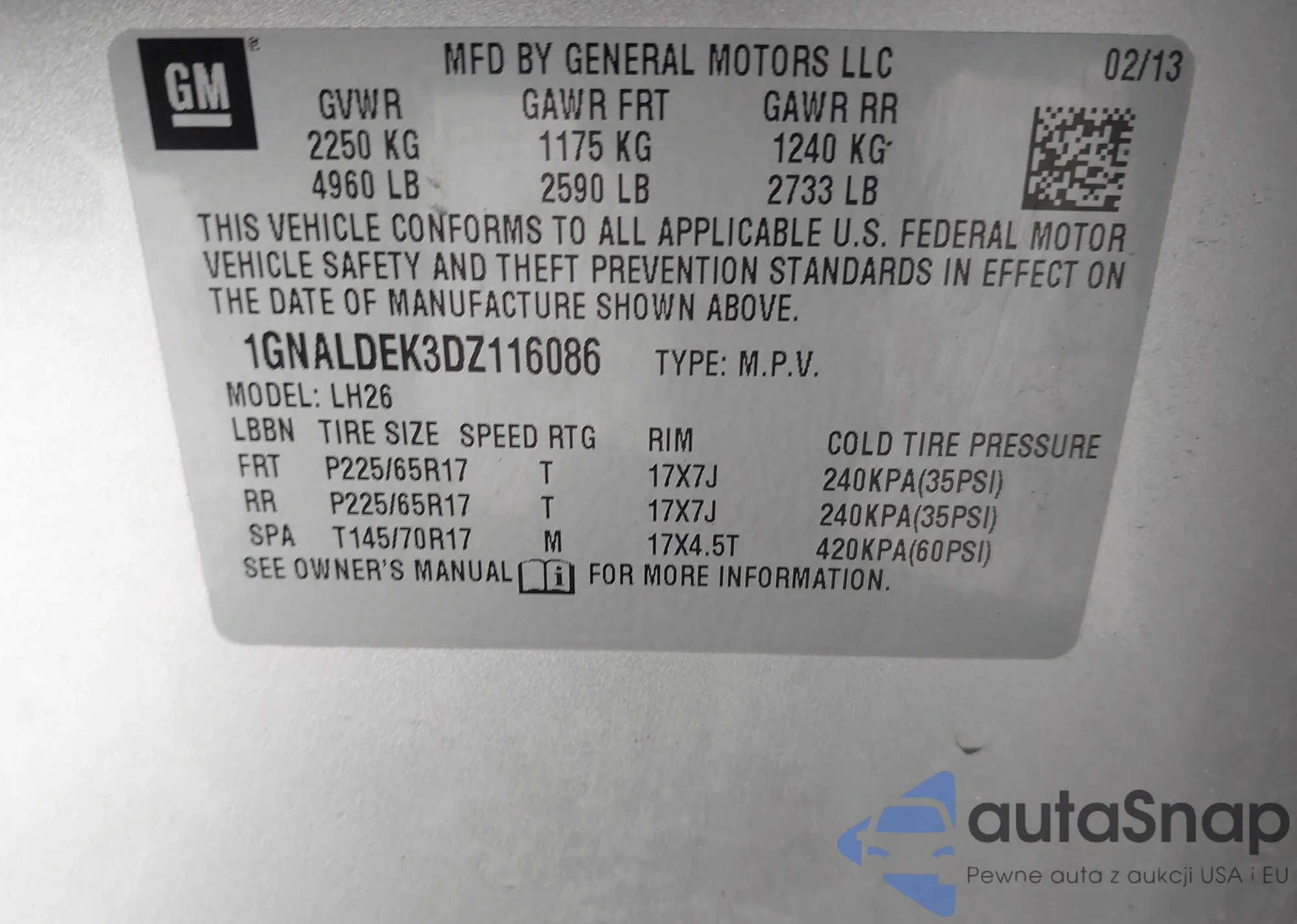 Samochód Chevrolet Equinox 2013 (VIN 1GNALDEK3DZ116086) sprzedaje go niezweryfikowany sprzedawca. Zalecamy raport Carfax i potwierdzenie możliwości rejestracji pojazdu przed zakupem.