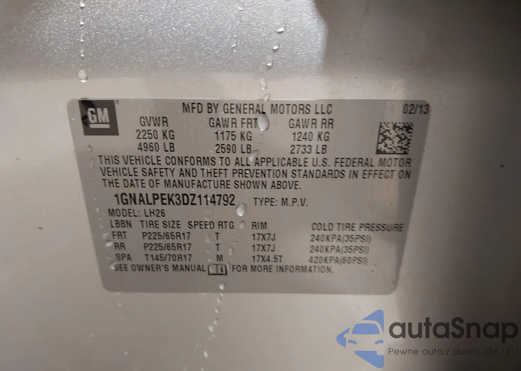 Samochód Chevrolet Equinox 2013 (VIN 1GNALPEK3DZ114792) nie był wcześniej licytowany. Dokumenty są czyste, przebieg odpowiada lub jest niższy niż średnia rynku. Sprzedaje go firma ubezpieczeniowa – polecamy zakup. Dostawa do portu zajmie ok. 6–8 tygodni.