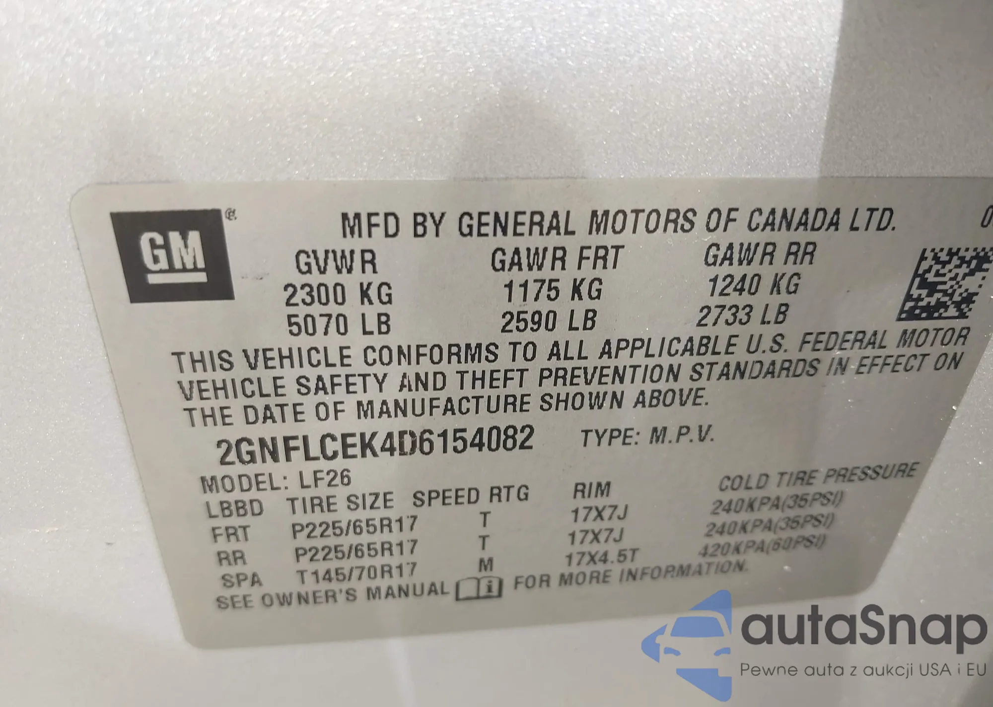 VIN: 2GNFLCEK4D6154082