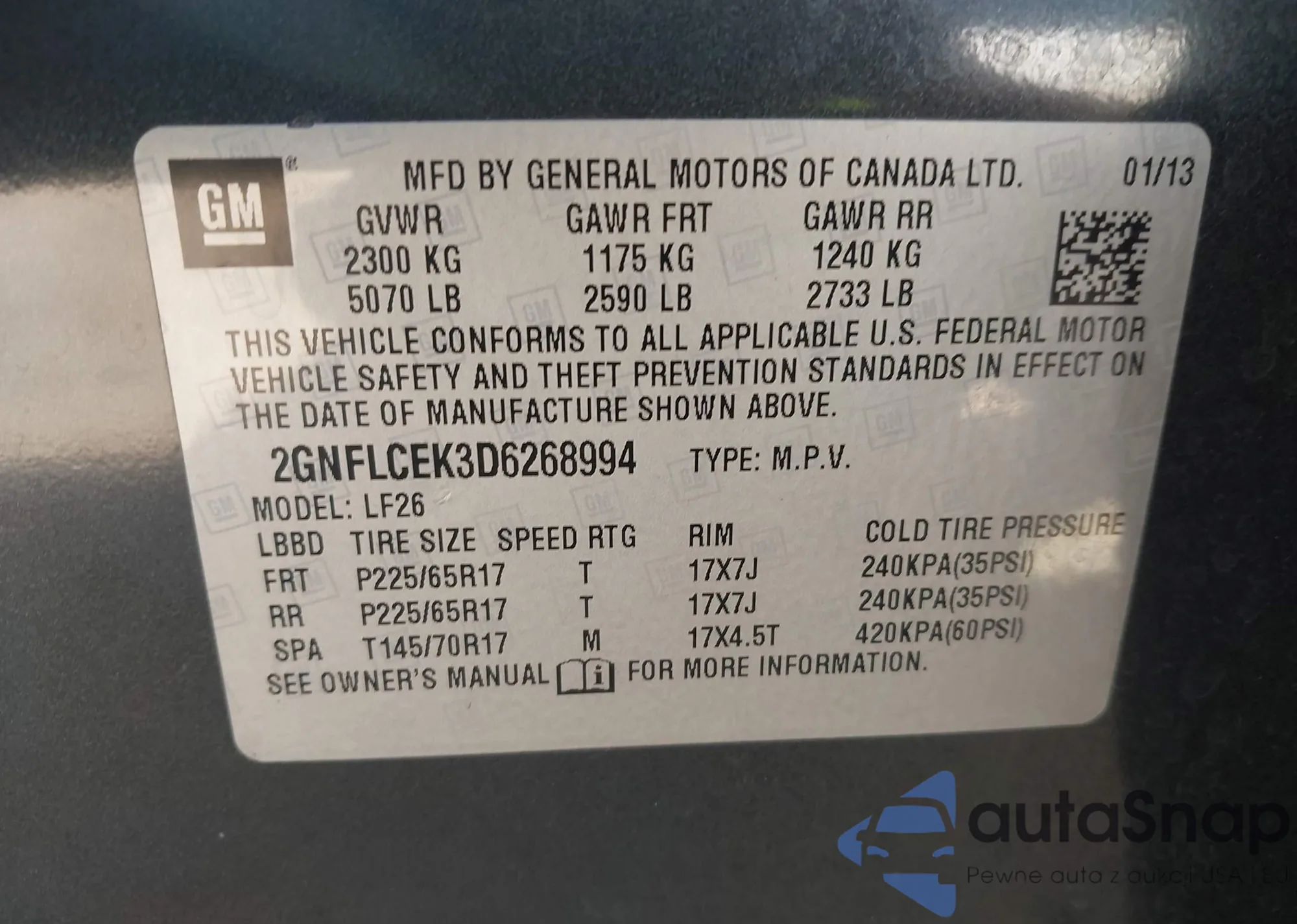 VIN: 2GNFLCEK3D6268994