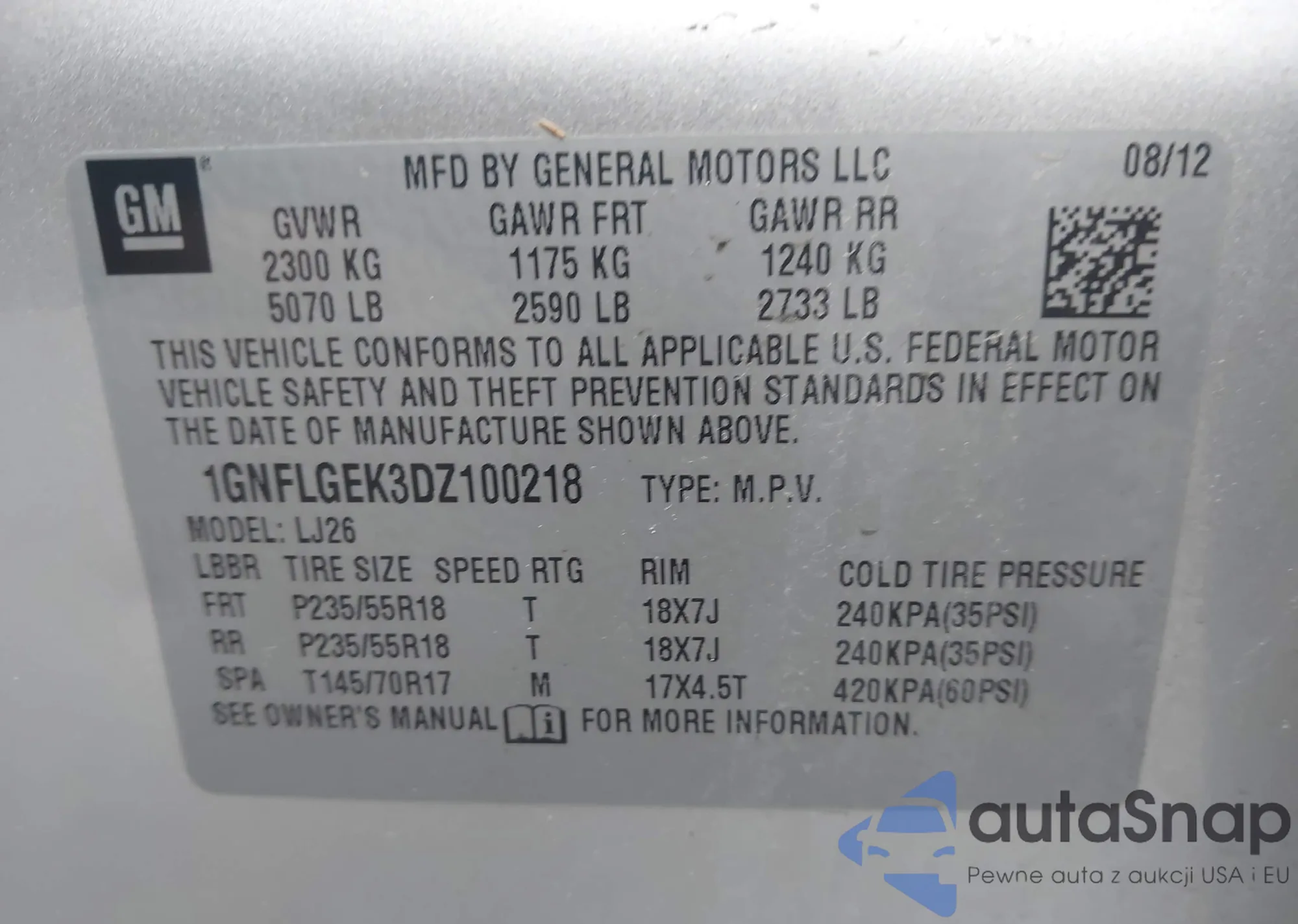 VIN: 1GNFLGEK3DZ100218