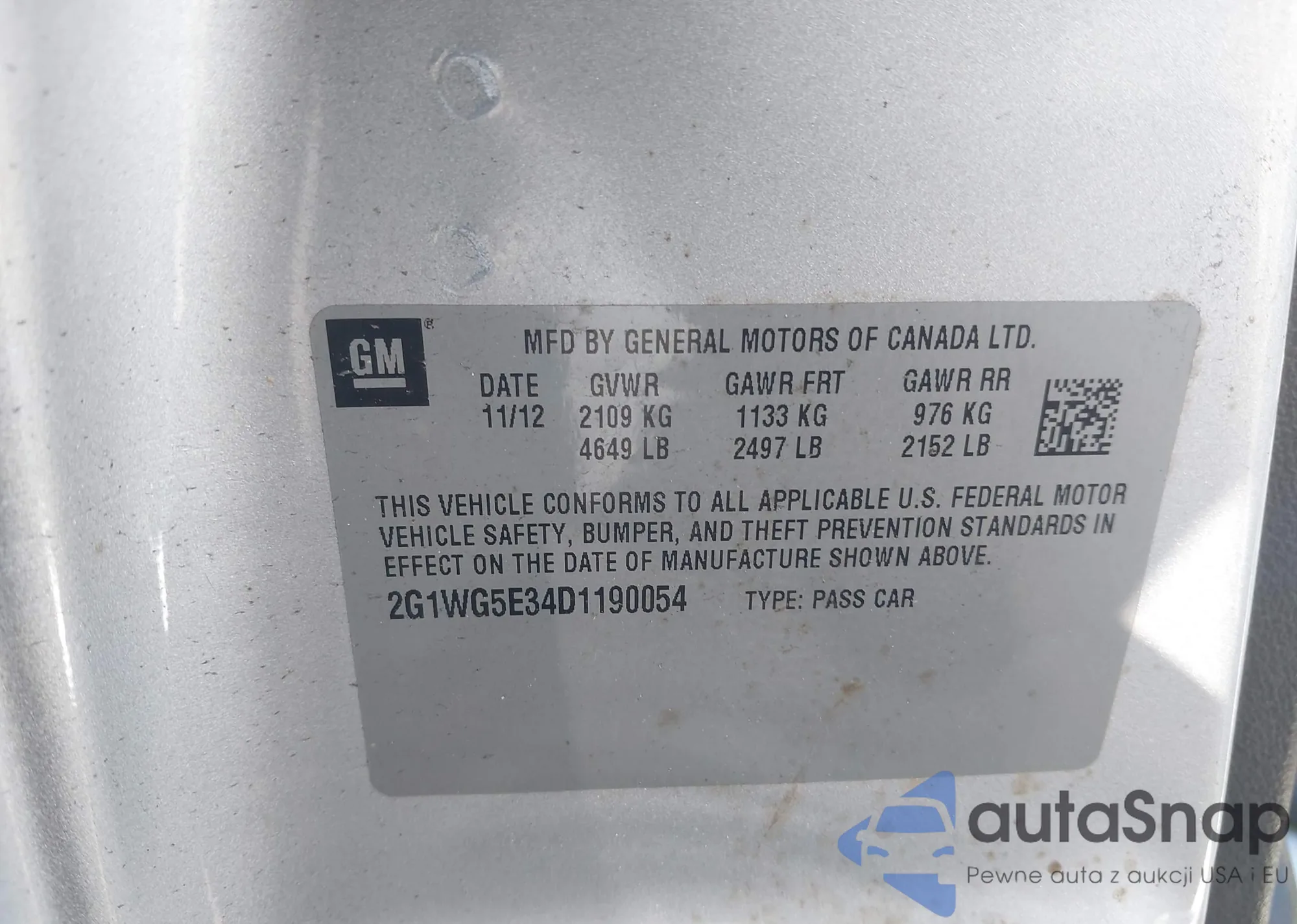 VIN: 2G1WG5E34D1190054