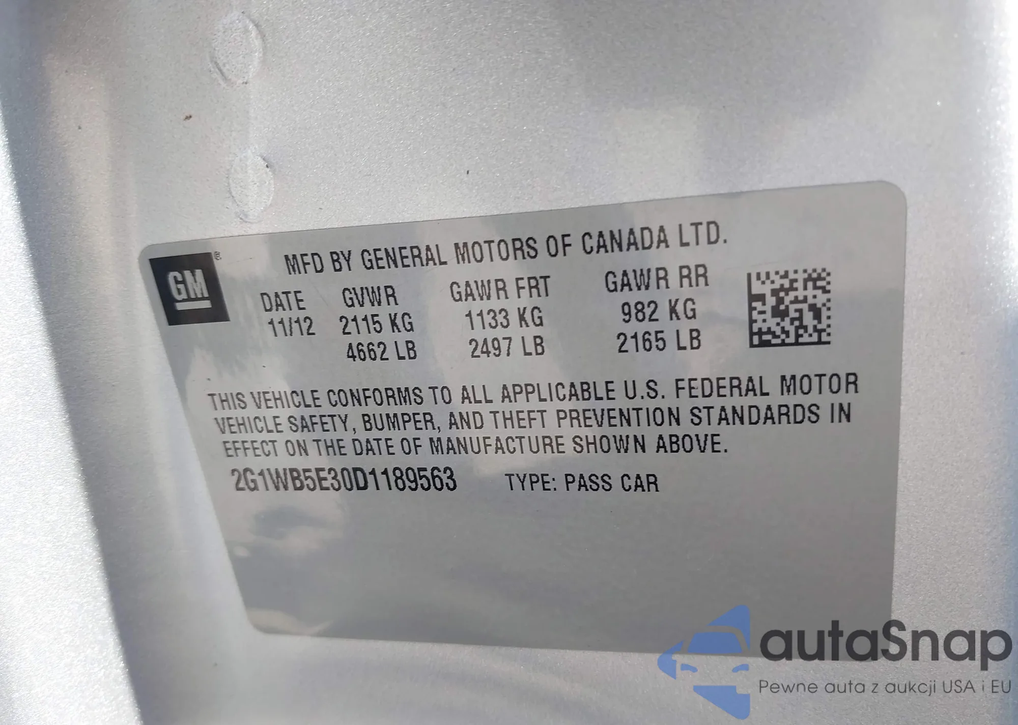 VIN: 2G1WB5E30D1189563