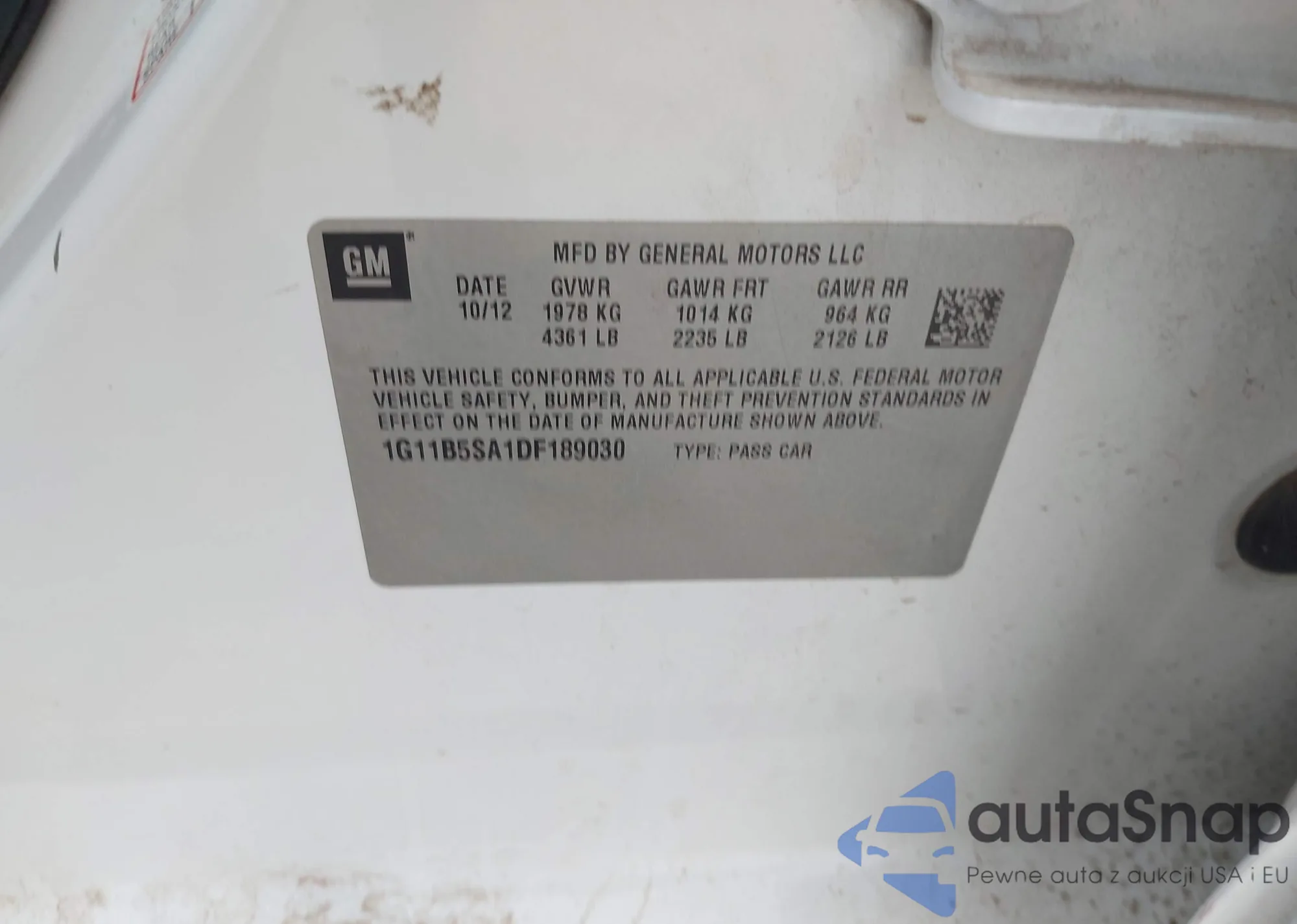 Samochód Chevrolet Malibu 2013 (VIN 1G11B5SA1DF189030) nie był wcześniej licytowany. Dokumenty są czyste, przebieg odpowiada lub jest niższy niż średnia rynku. Sprzedaje go firma ubezpieczeniowa – polecamy zakup. Dostawa do portu zajmie ok. 6–8 tygodni.