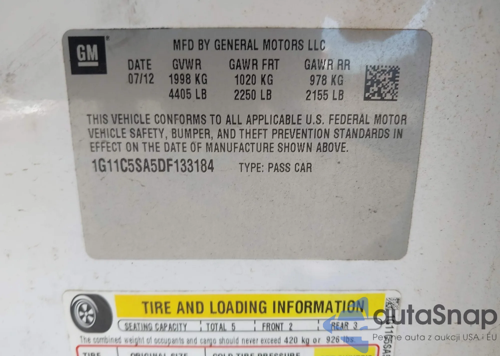 VIN: 1G11C5SA5DF133184