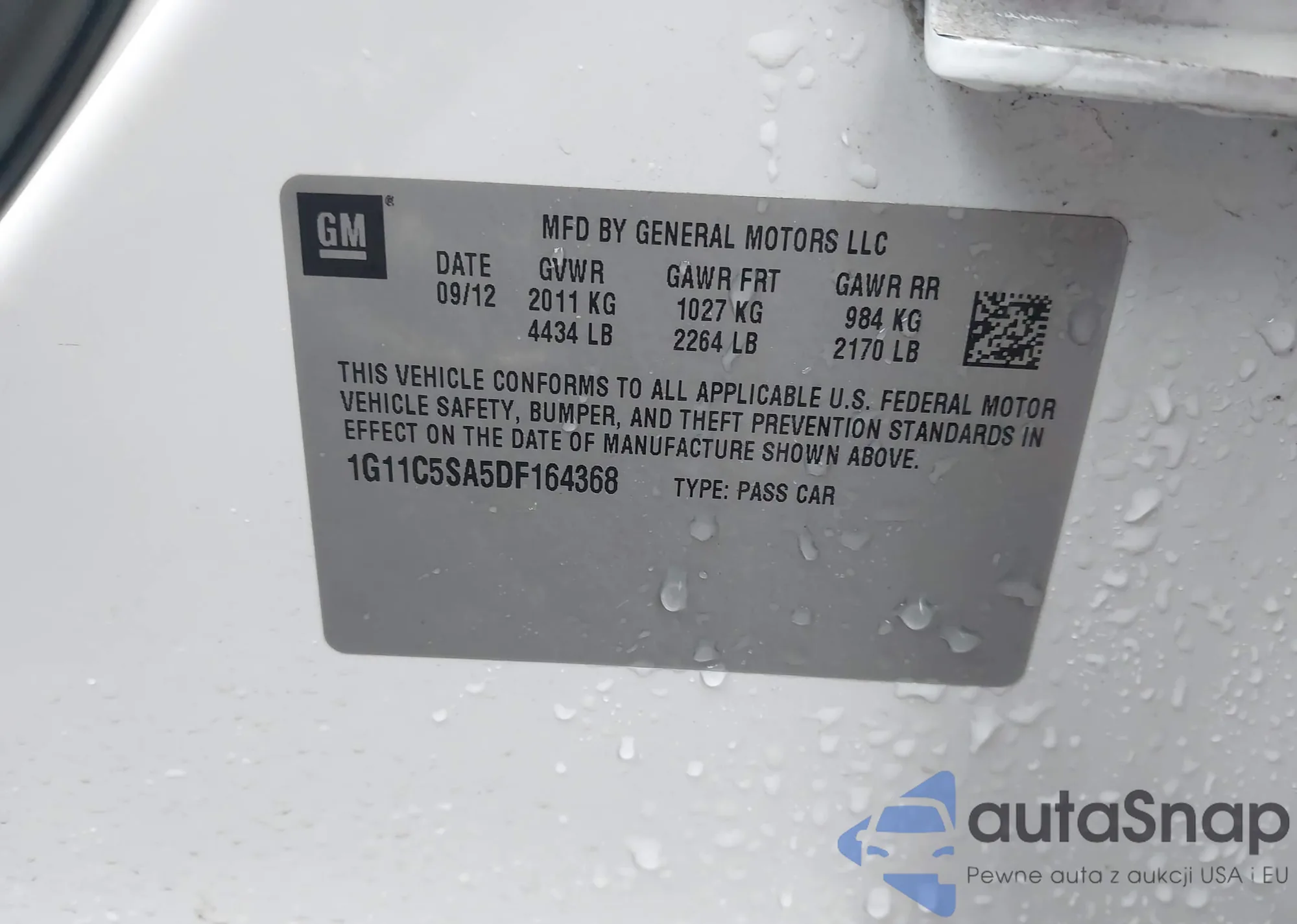 Samochód Chevrolet Malibu 2013 (VIN 1G11C5SA5DF164368) nie był wcześniej licytowany. Dokumenty są czyste, przebieg odpowiada lub jest niższy niż średnia rynku. Sprzedaje go firma ubezpieczeniowa – polecamy zakup. Dostawa do portu zajmie ok. 6–8 tygodni.