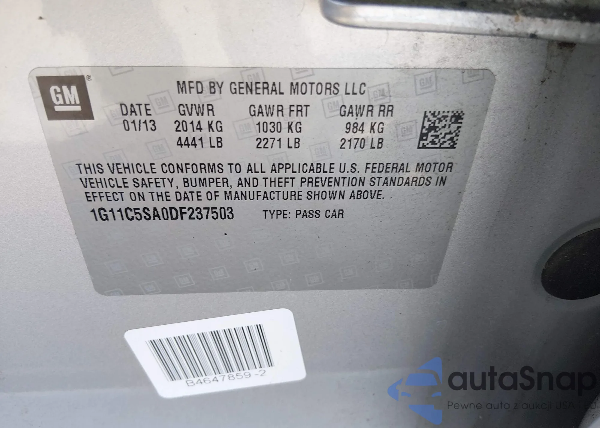 VIN: 1G11C5SA0DF237503