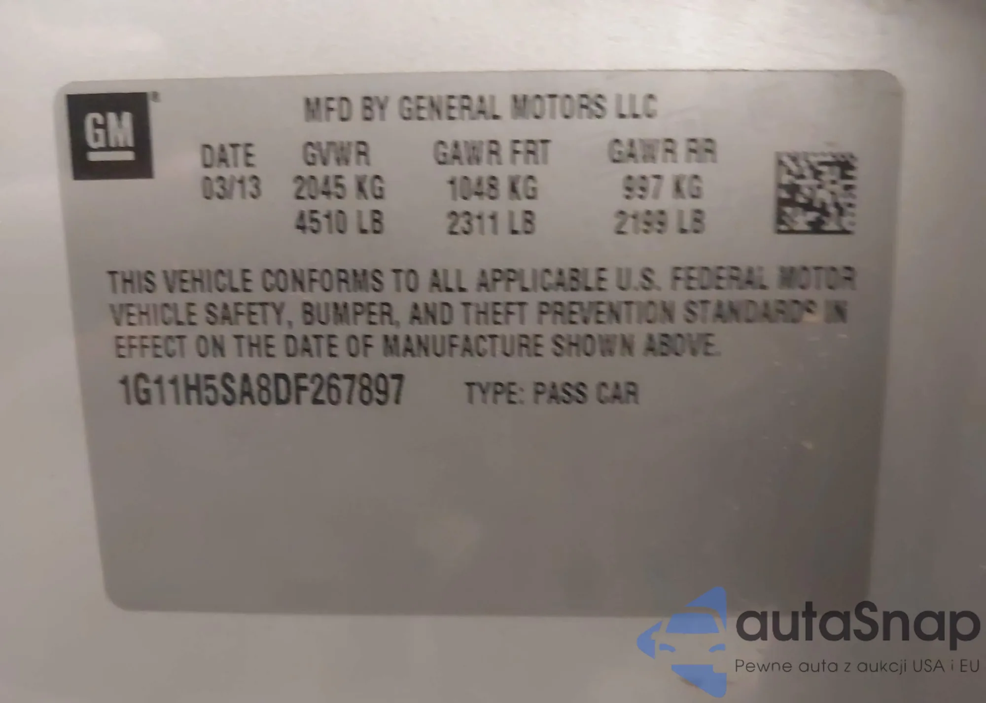 VIN: 1G11H5SA8DF267897