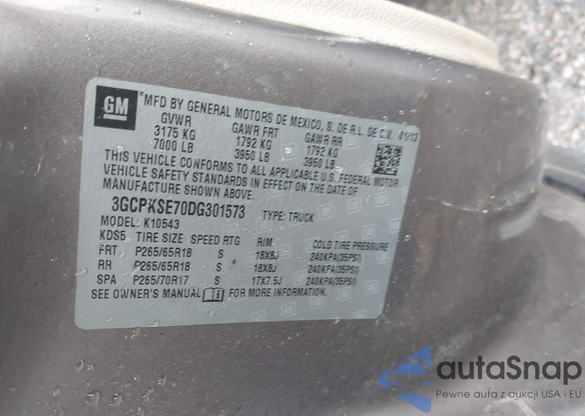 VIN: 3GCPKSE70DG301573