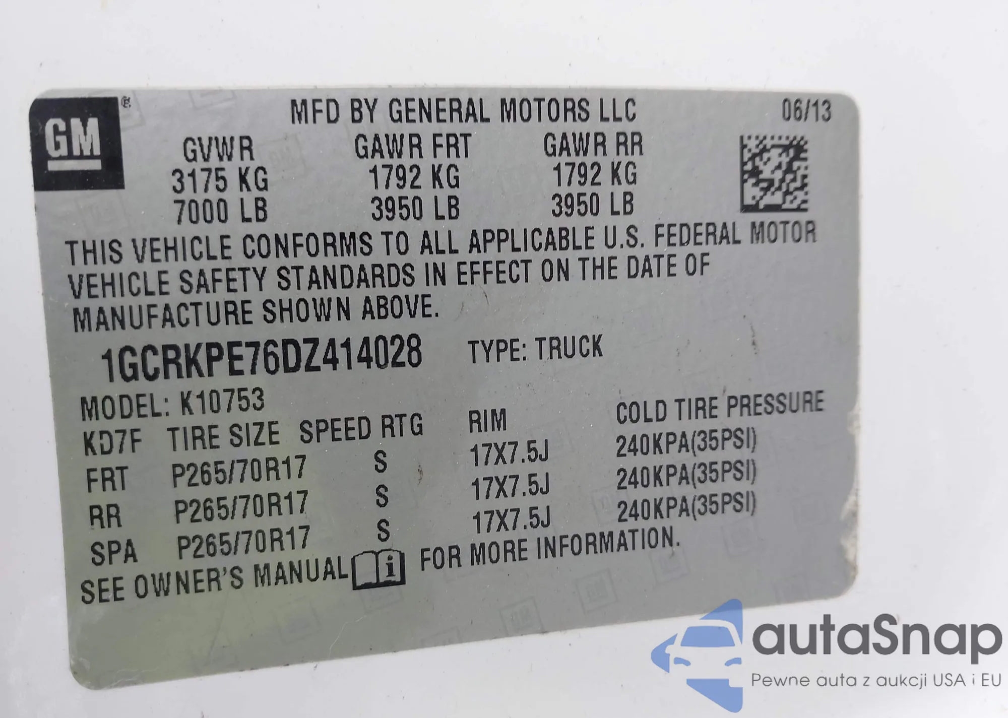 VIN: 1GCRKPE76DZ414028
