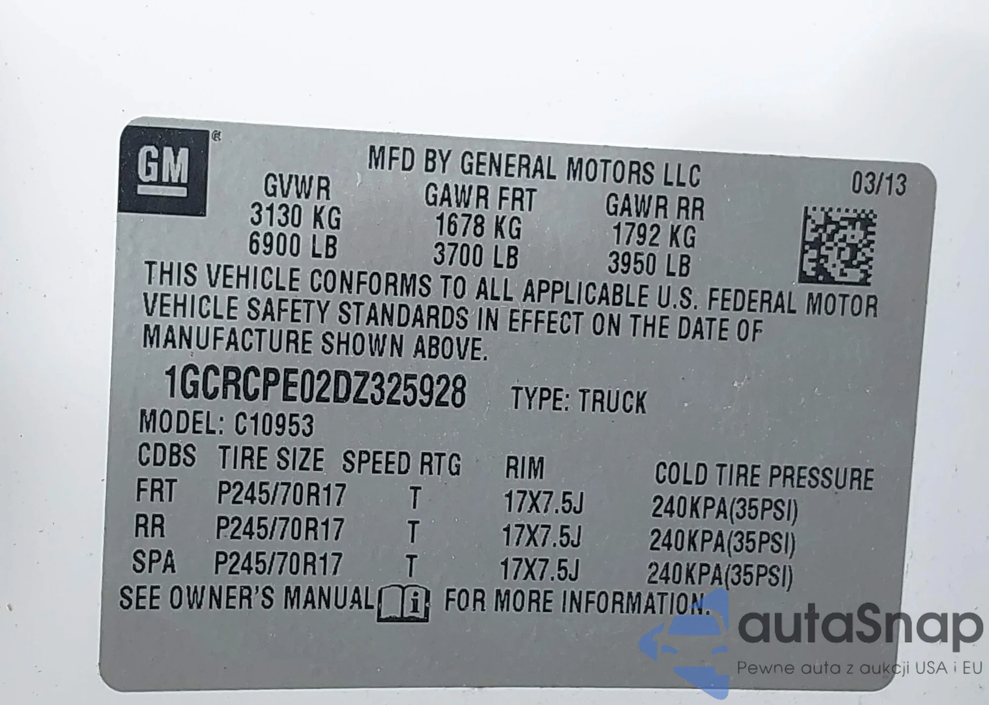 • VIN: 1GCRCPE02DZ325928