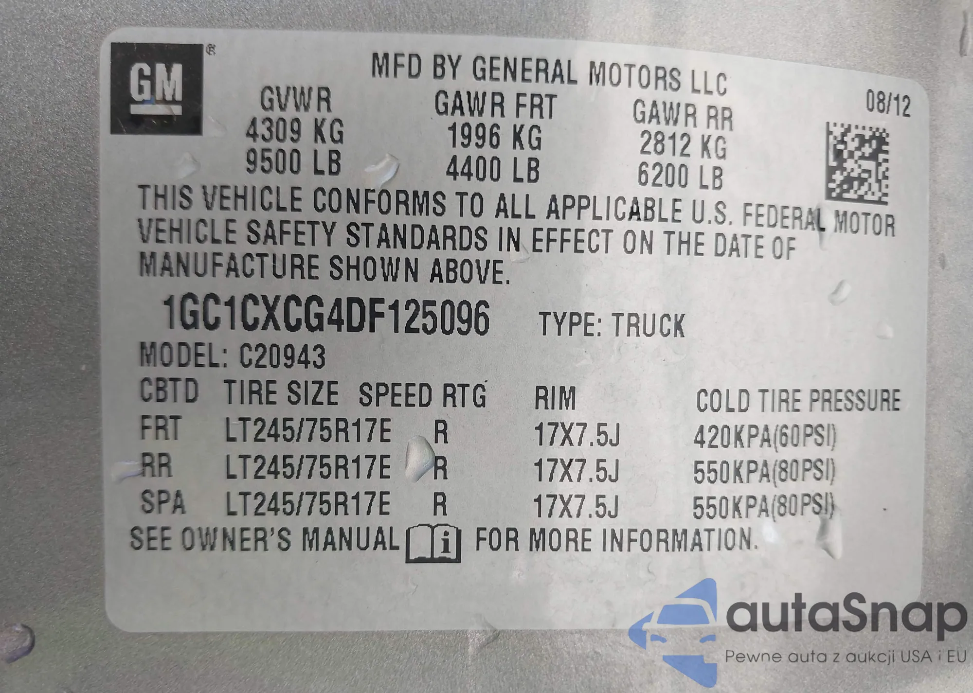 VIN: 1GC1CXCG4DF125096