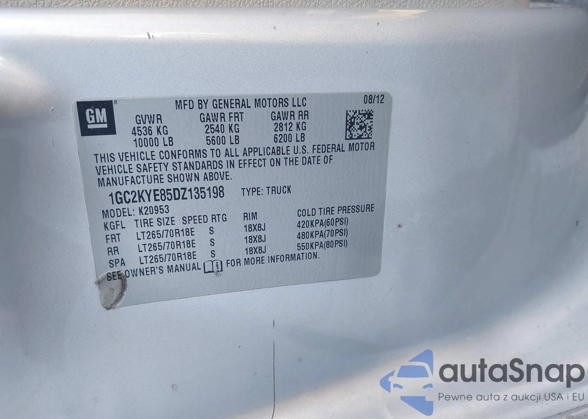 • VIN: 1GC2KYE85DZ135198
