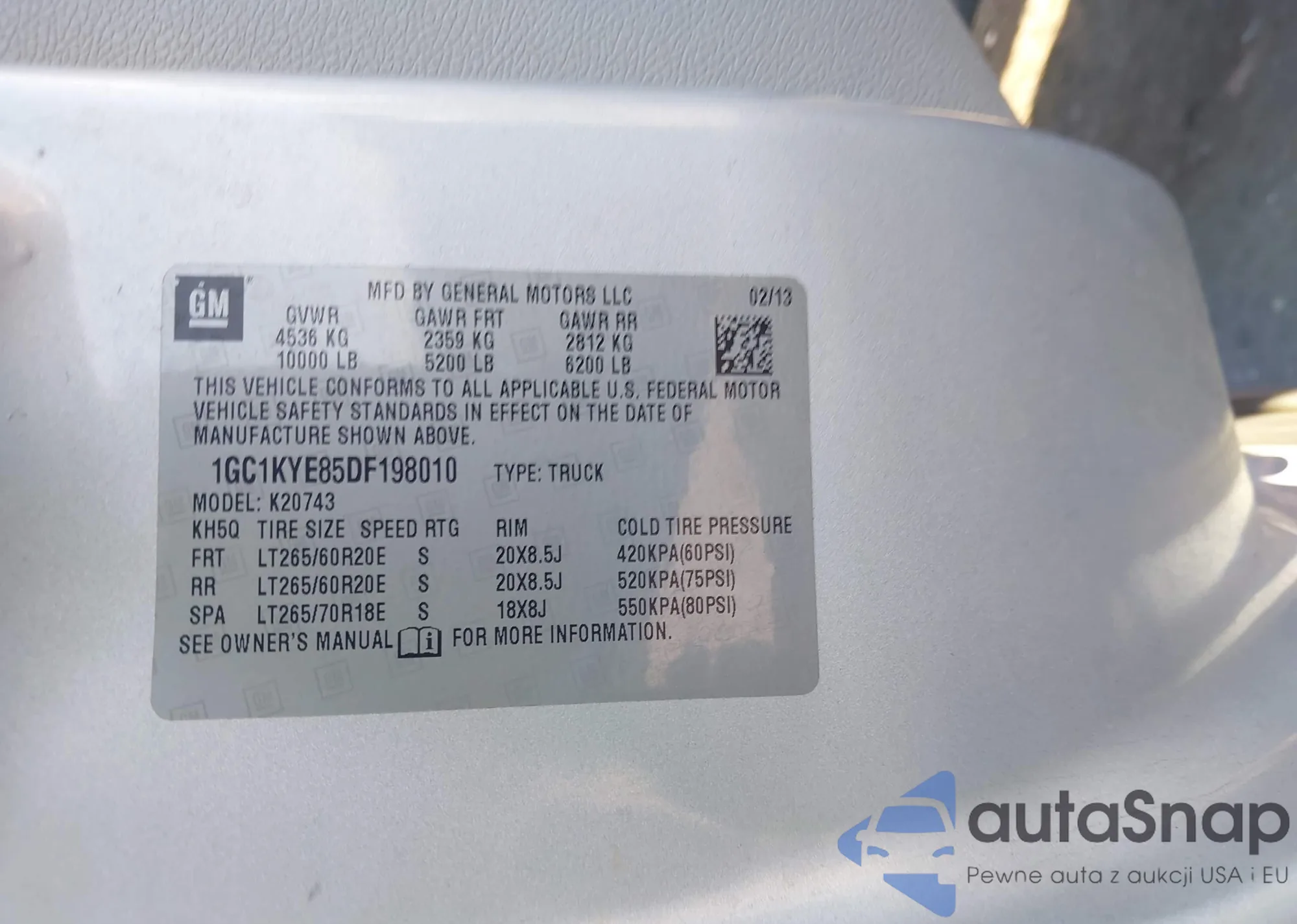 Samochód Chevrolet Silverado 2013 (VIN 1GC1KYE85DF198010) nie był wcześniej licytowany. Dokumenty są czyste, przebieg odpowiada lub jest niższy niż średnia rynku. Sprzedaje go firma ubezpieczeniowa – polecamy zakup. Dostawa do portu zajmie ok. 6–8 tygodni.