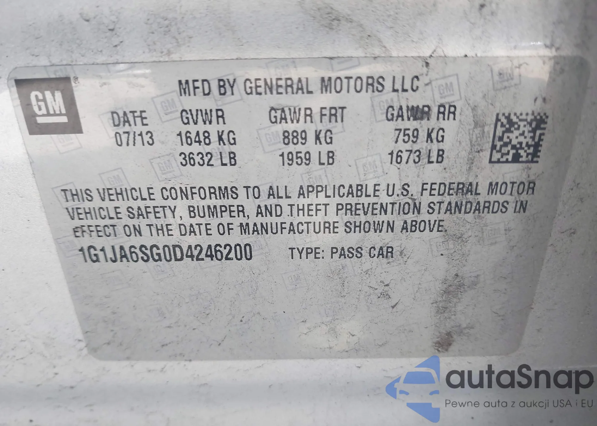 VIN: 1G1JA6SG0D4246200