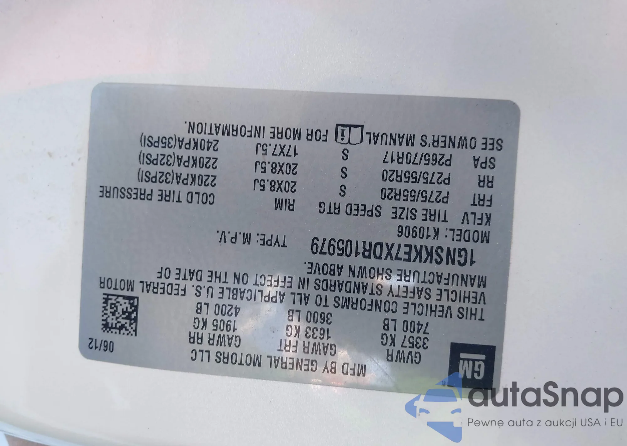 VIN: 1GNSKKE7XDR105979