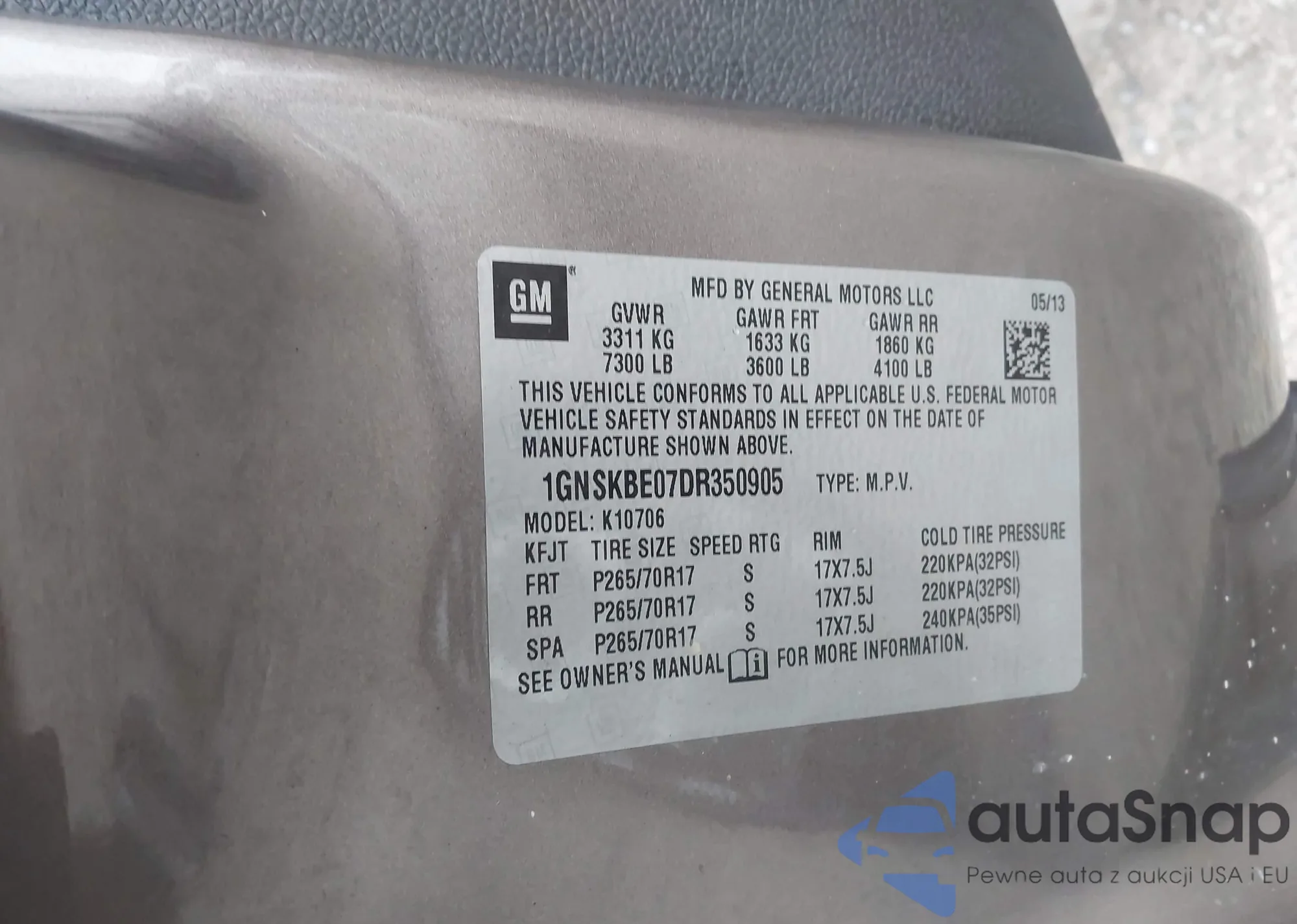 • VIN: 1GNSKBE07DR350905