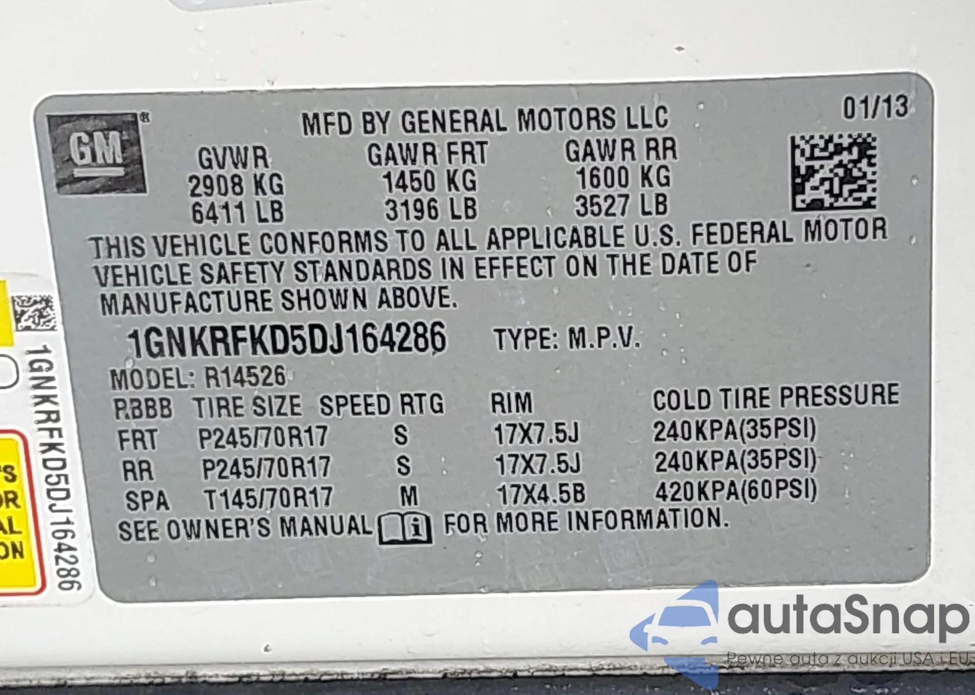 VIN: 1GNKRFKD5DJ164286