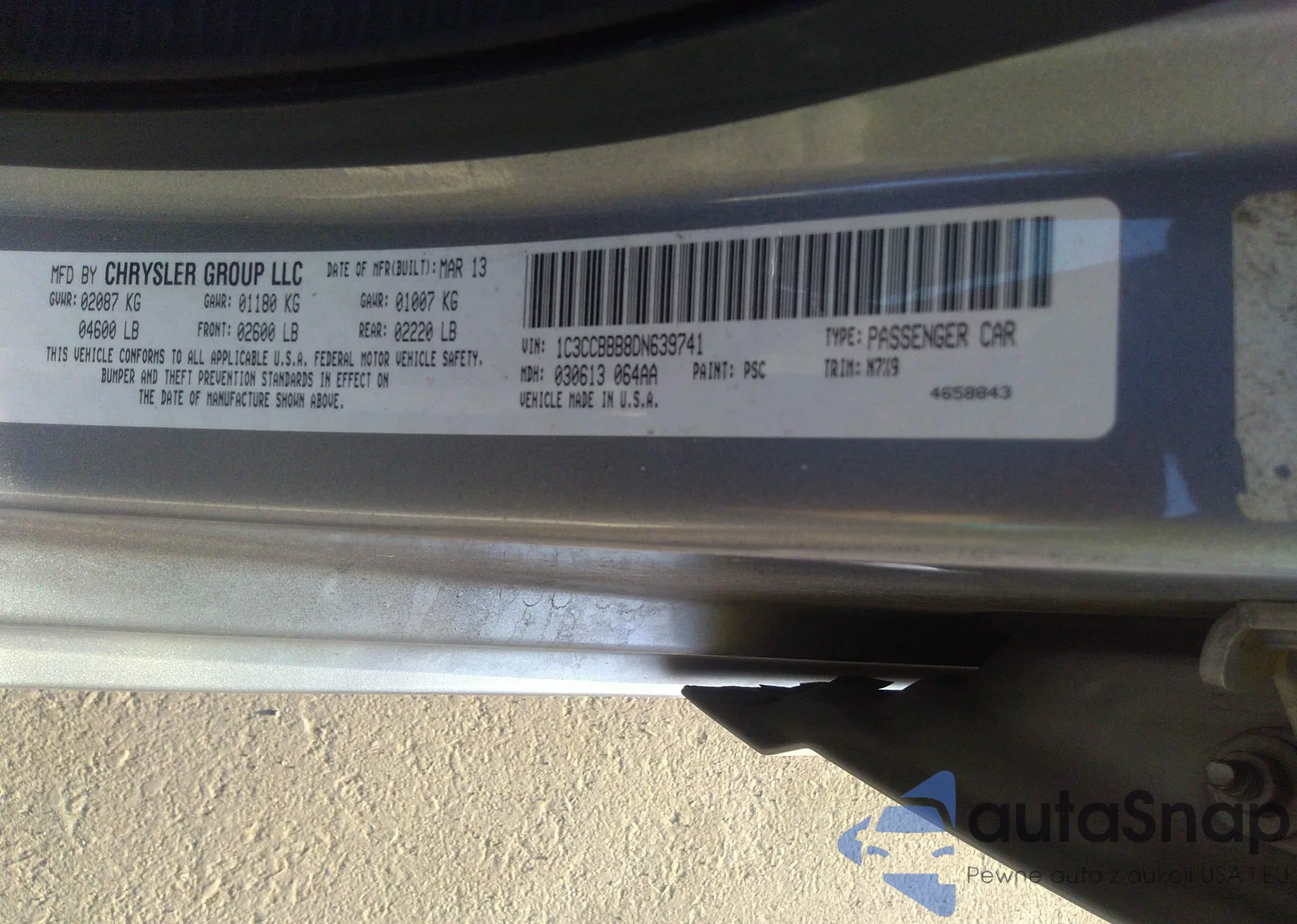VIN: 1C3CCBBB8DN639741