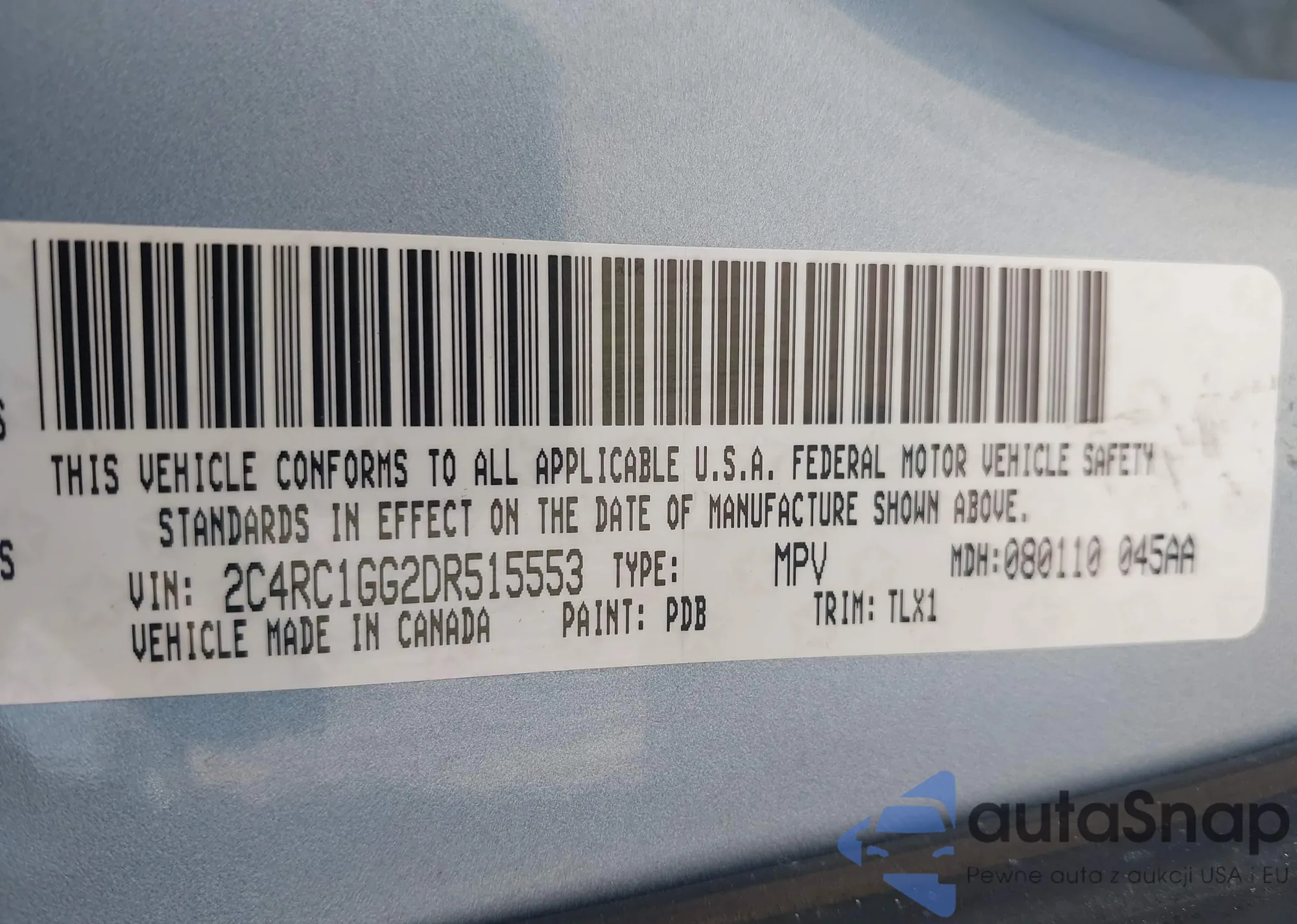 VIN: 2C4RC1GG2DR515553