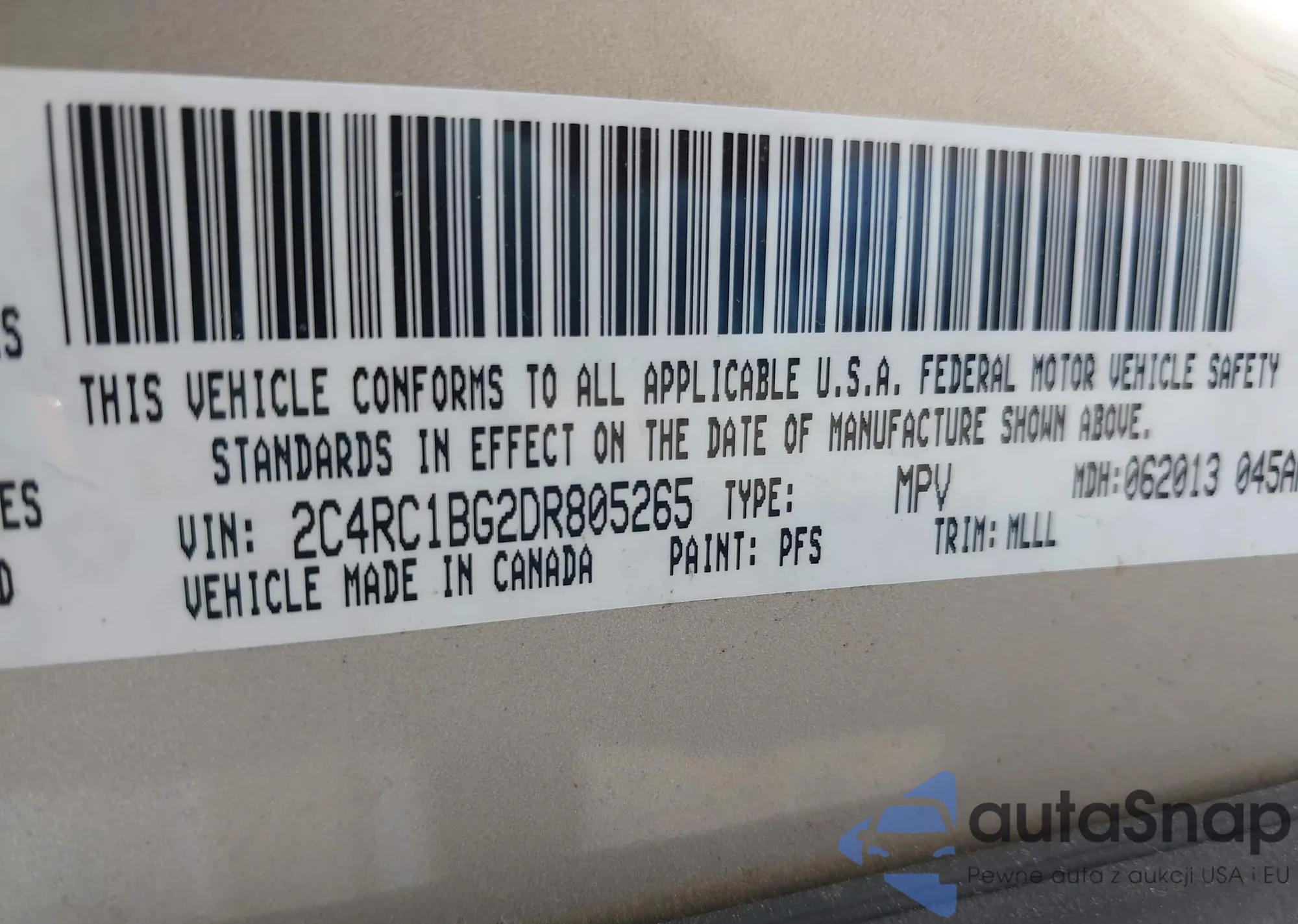 VIN: 2C4RC1BG2DR805265