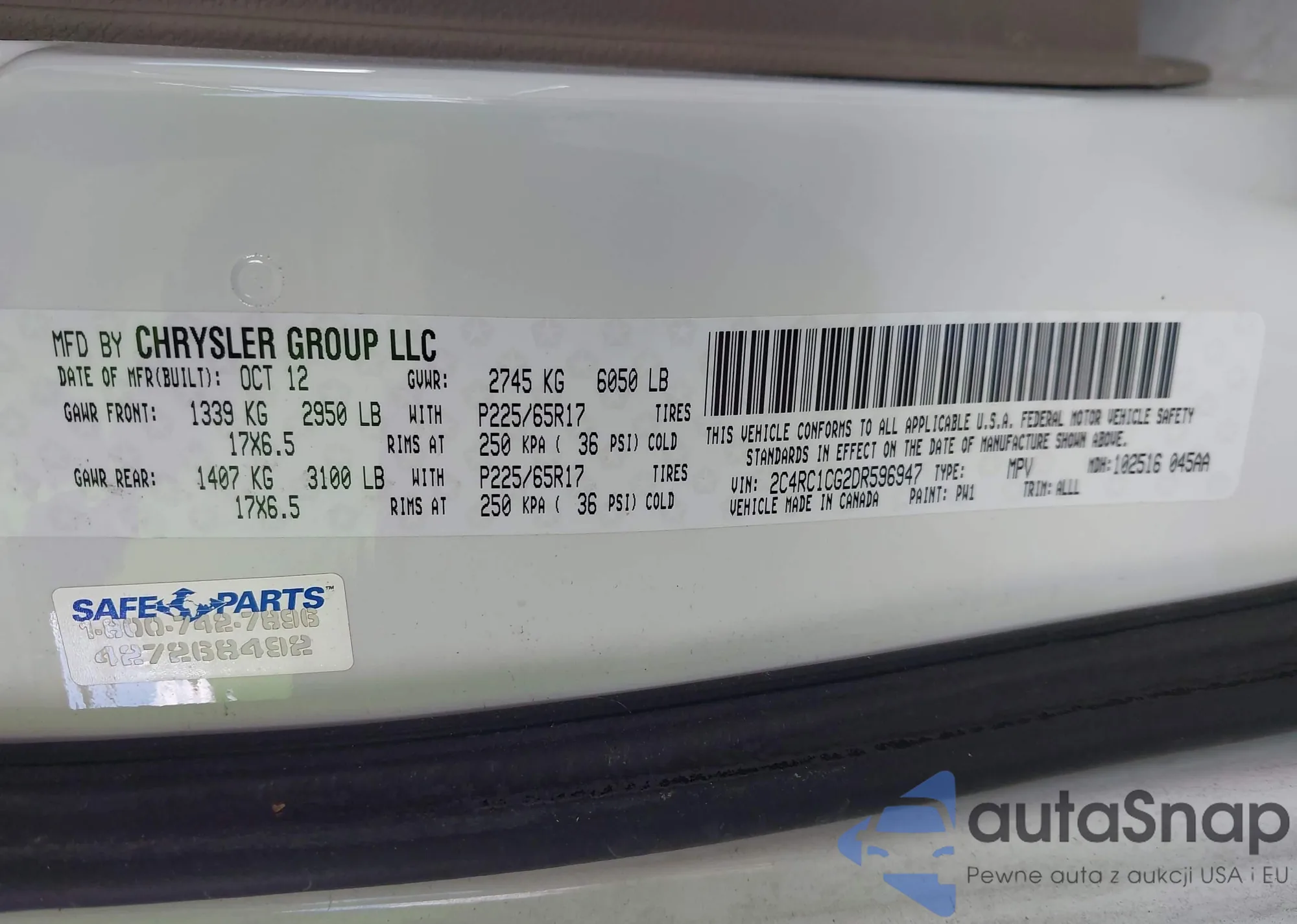 Samochód Chrysler Town & Country 2013 (VIN 2C4RC1CG2DR596947) sprzedaje go niezweryfikowany sprzedawca. Zalecamy raport Carfax i potwierdzenie możliwości rejestracji pojazdu przed zakupem.