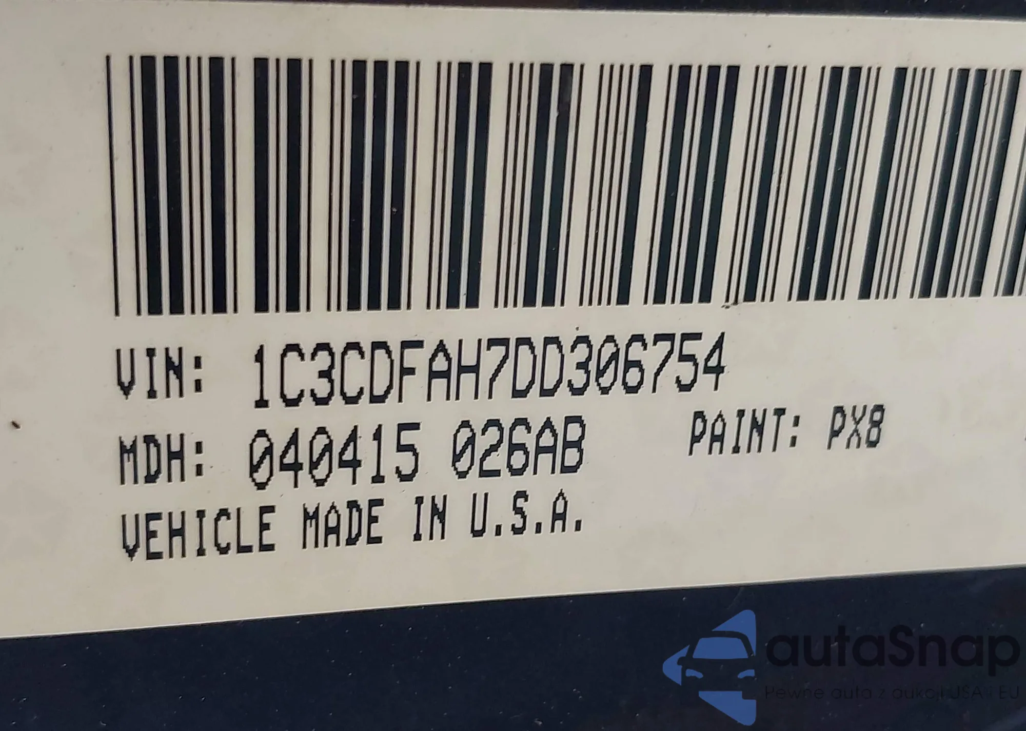 • VIN: 1C3CDFAH7DD306754