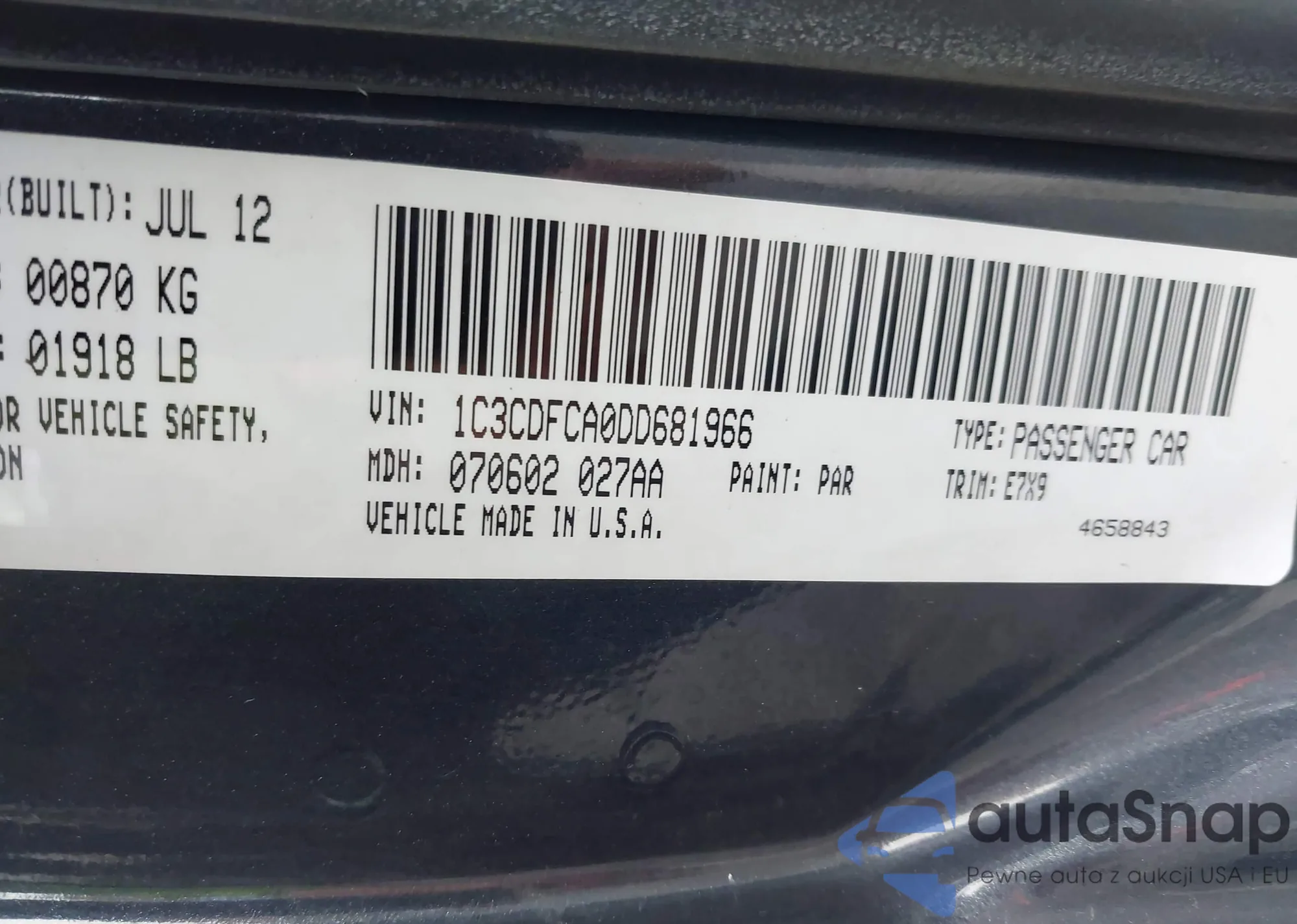 • VIN: 1C3CDFCA0DD681966