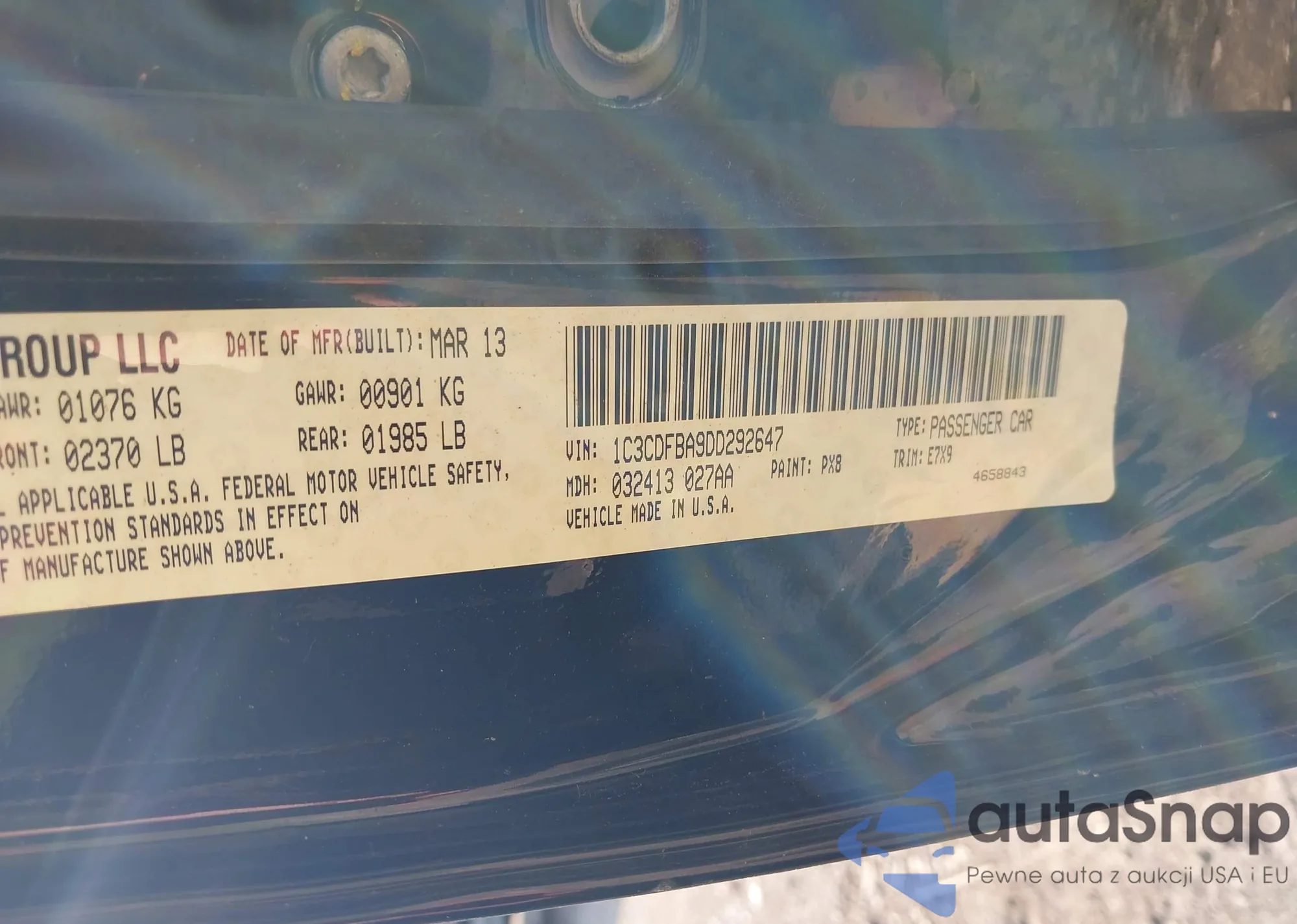 VIN: 1C3CDFBA9DD292647