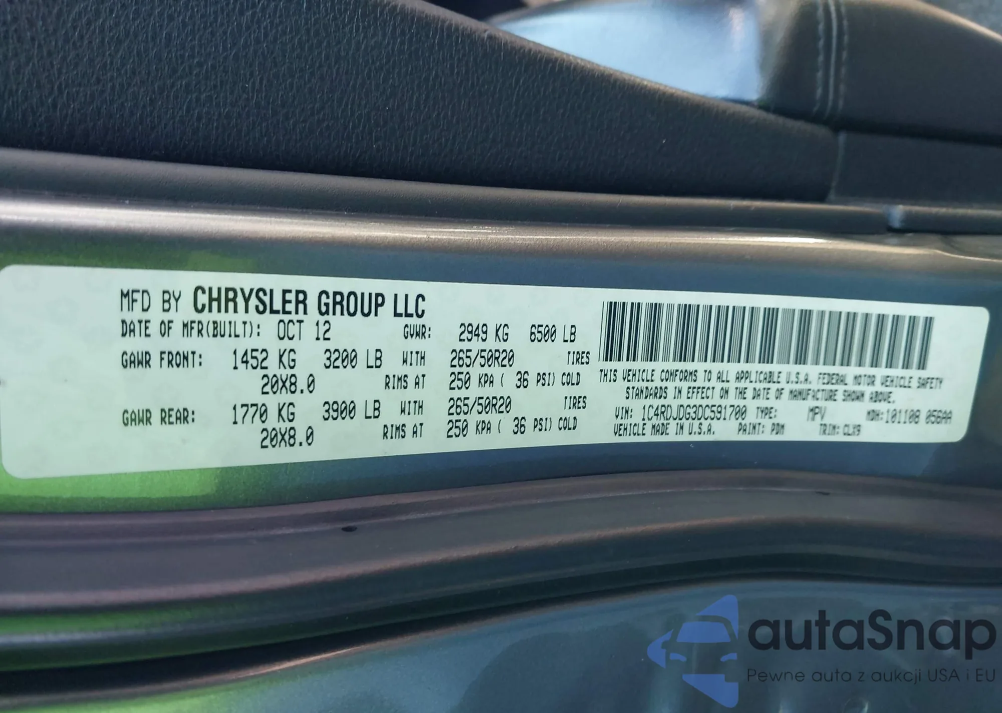 VIN: 1C4RDJDG3DC591700