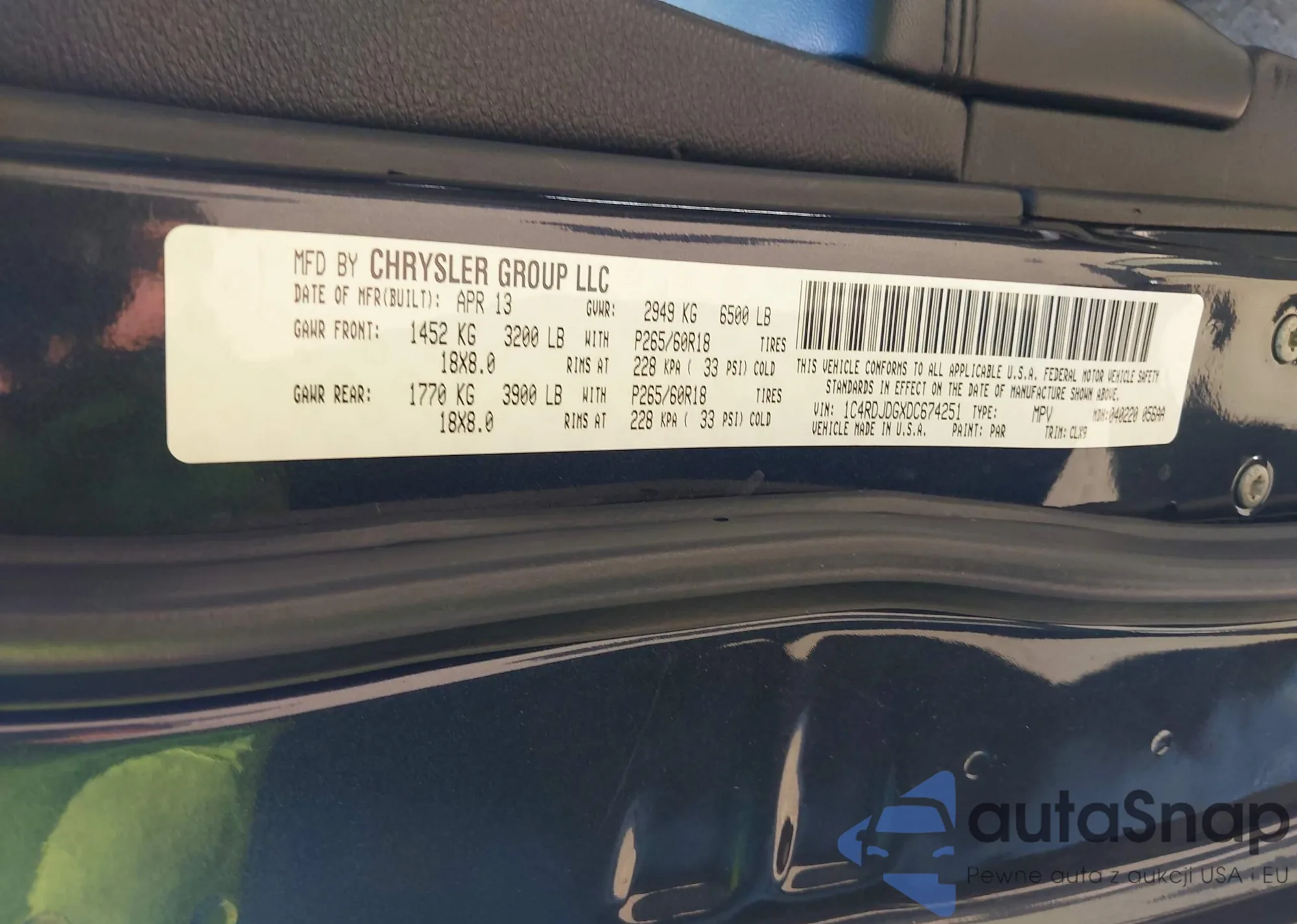 VIN: 1C4RDJDGXDC674251