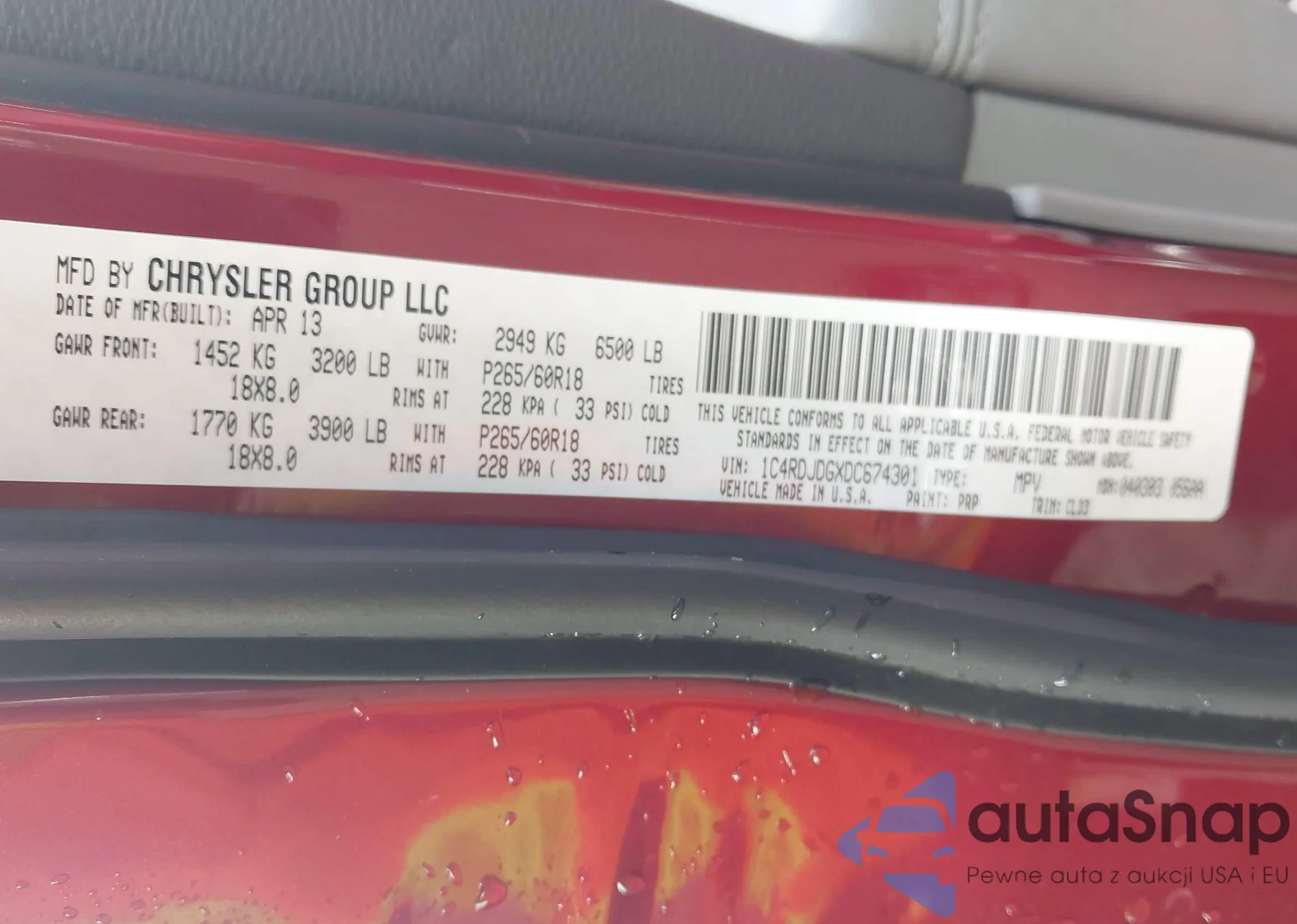Samochód Dodge Durango 2013 (VIN 1C4RDJDGXDC674301) nie był wcześniej licytowany. Dokumenty są czyste, przebieg odpowiada lub jest niższy niż średnia rynku. Sprzedaje go firma ubezpieczeniowa – polecamy zakup. Dostawa do portu zajmie ok. 6–8 tygodni.
