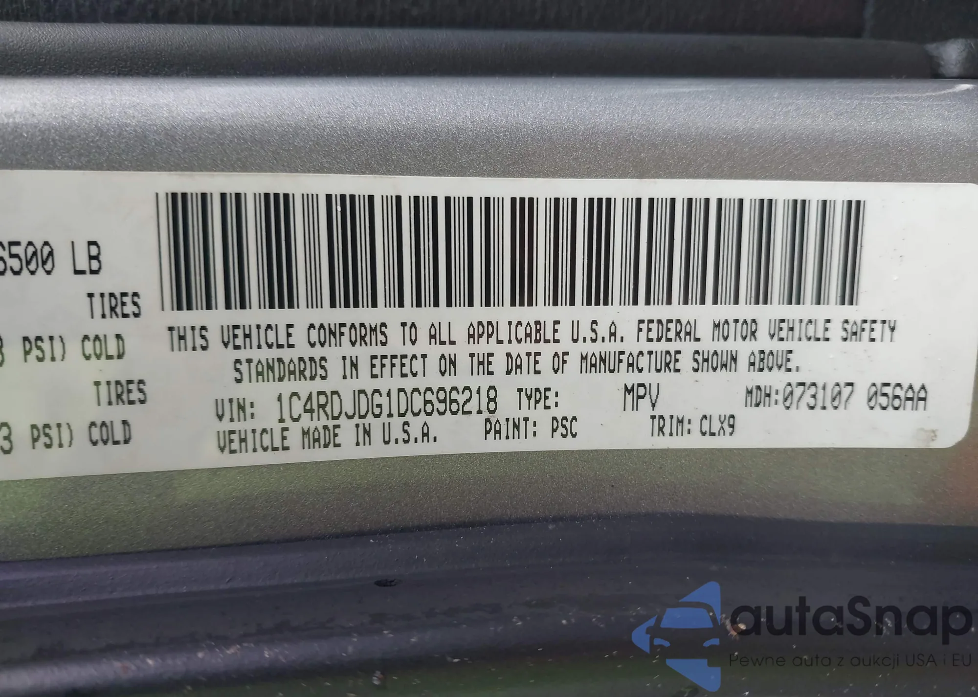 VIN: 1C4RDJDG1DC696218