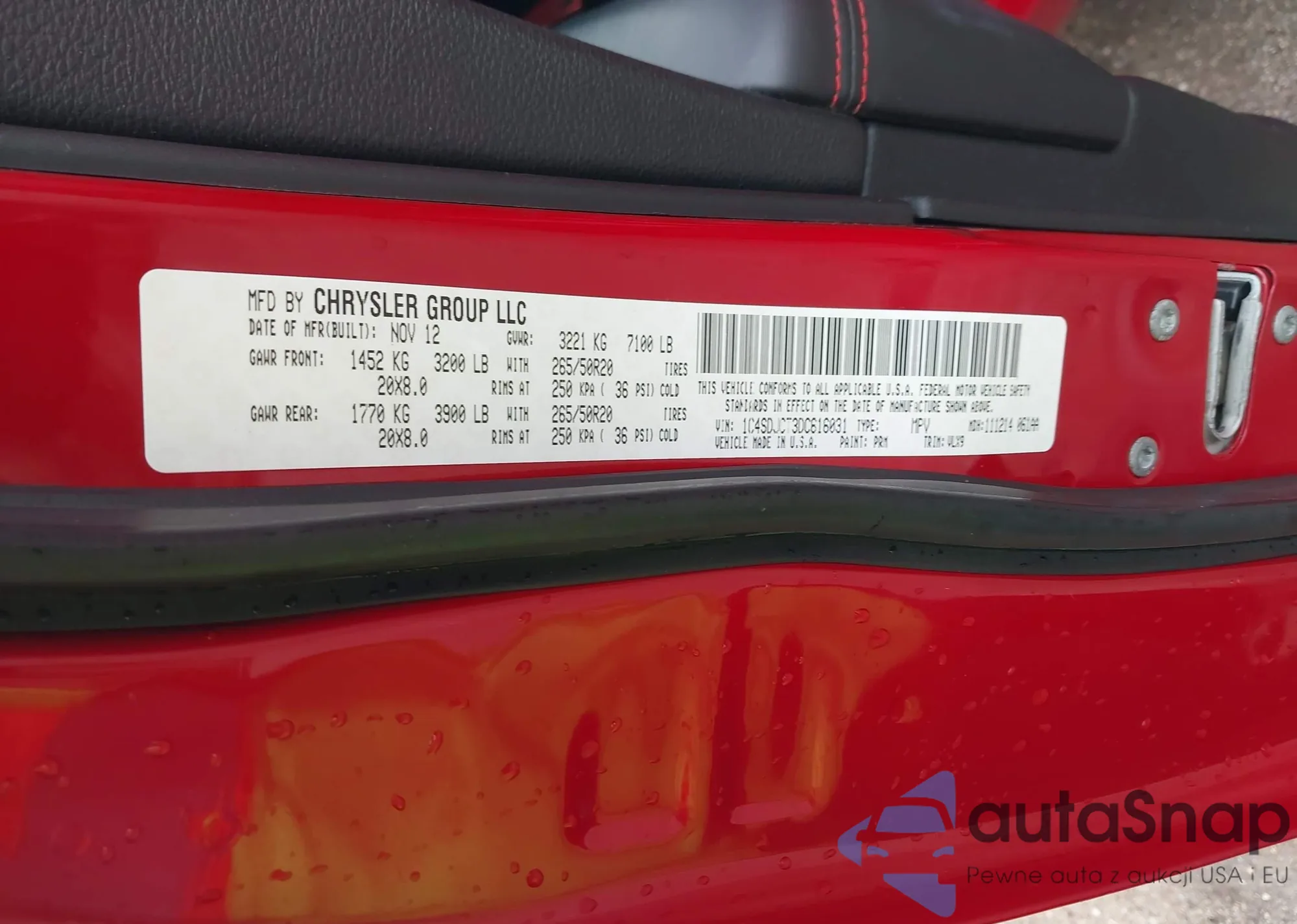 VIN: 1C4SDJCT3DC616031