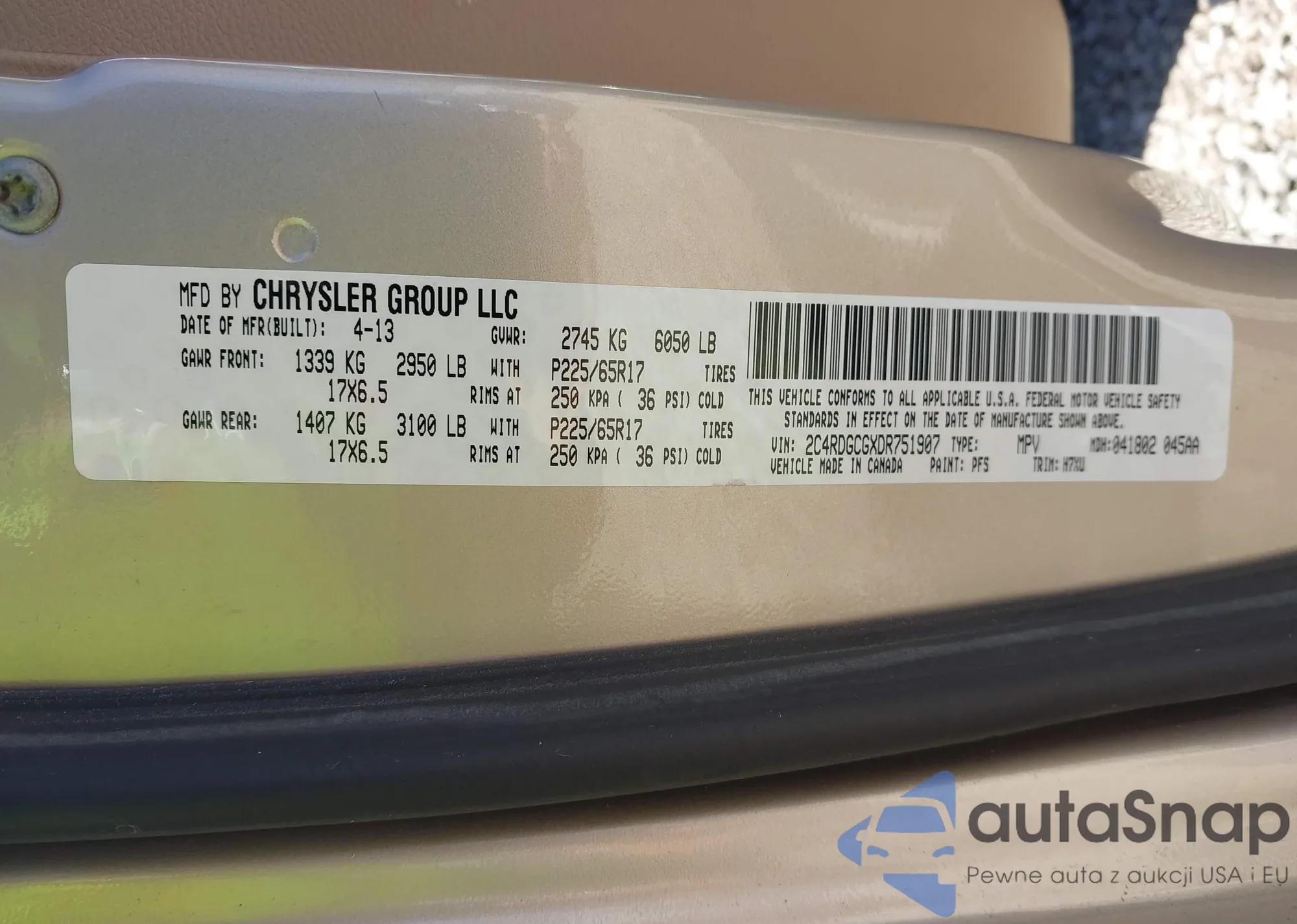 VIN: 2C4RDGCGXDR751907