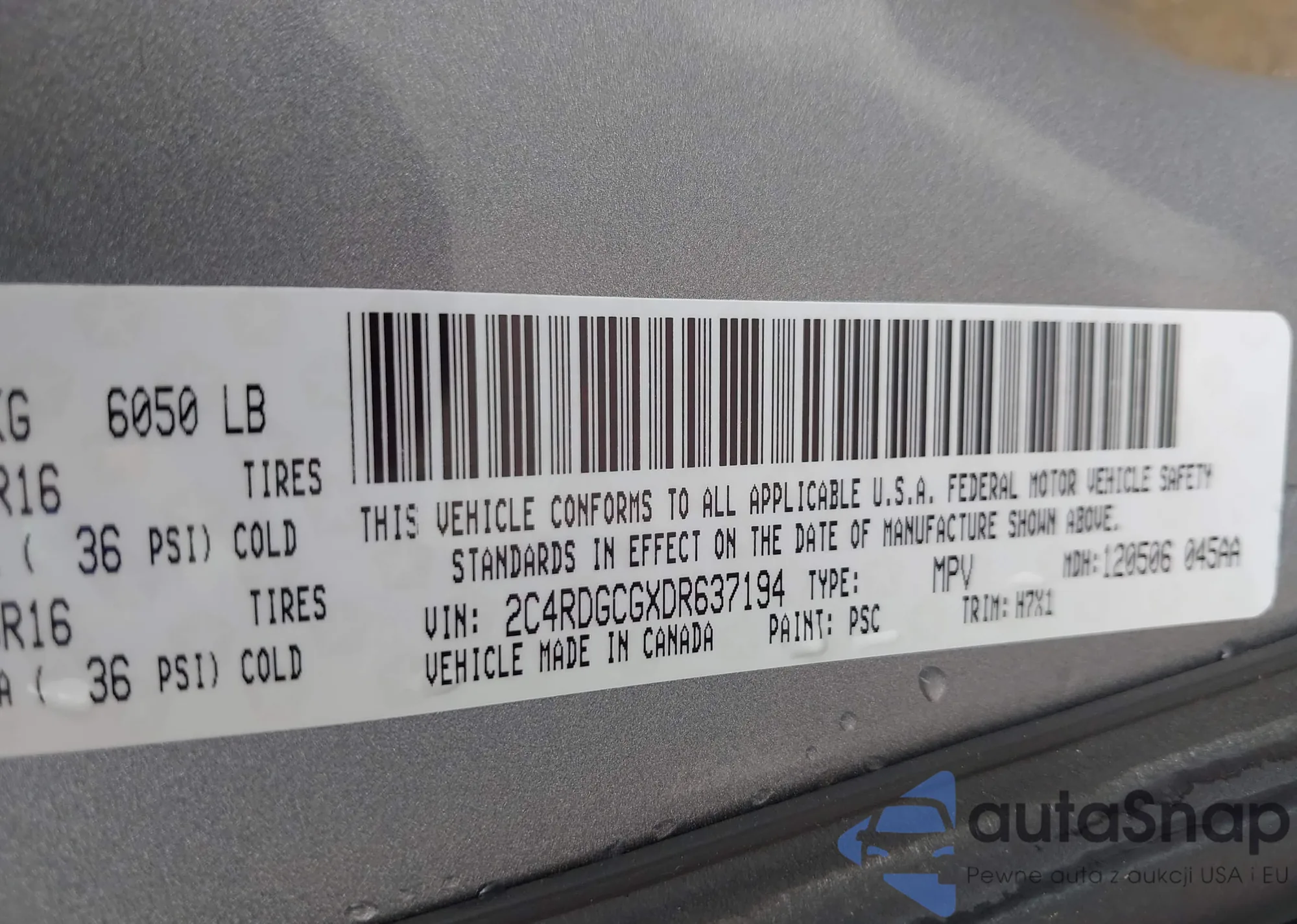 VIN: 2C4RDGCGXDR637194