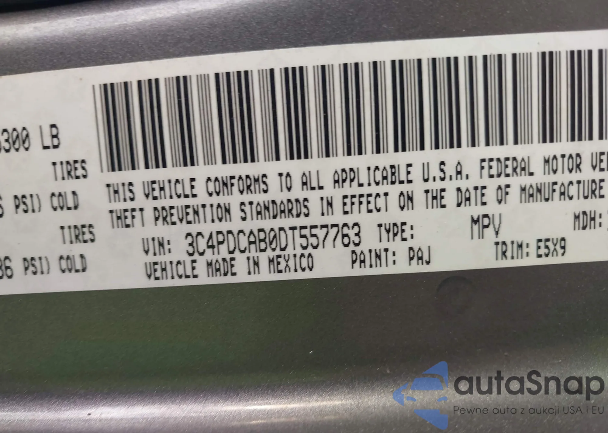 • VIN: 3C4PDCAB0DT557763