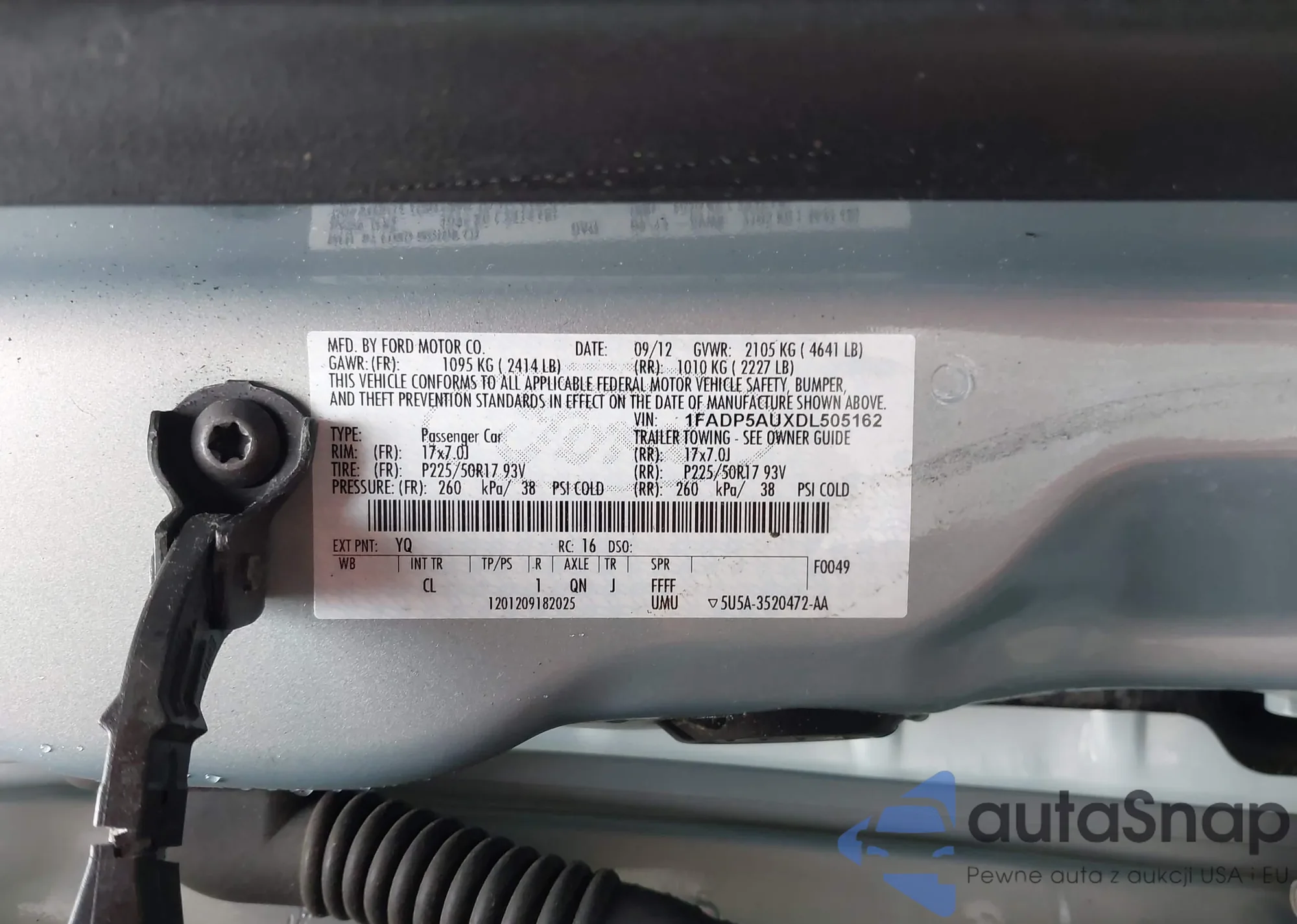 VIN: 1FADP5AUXDL505162