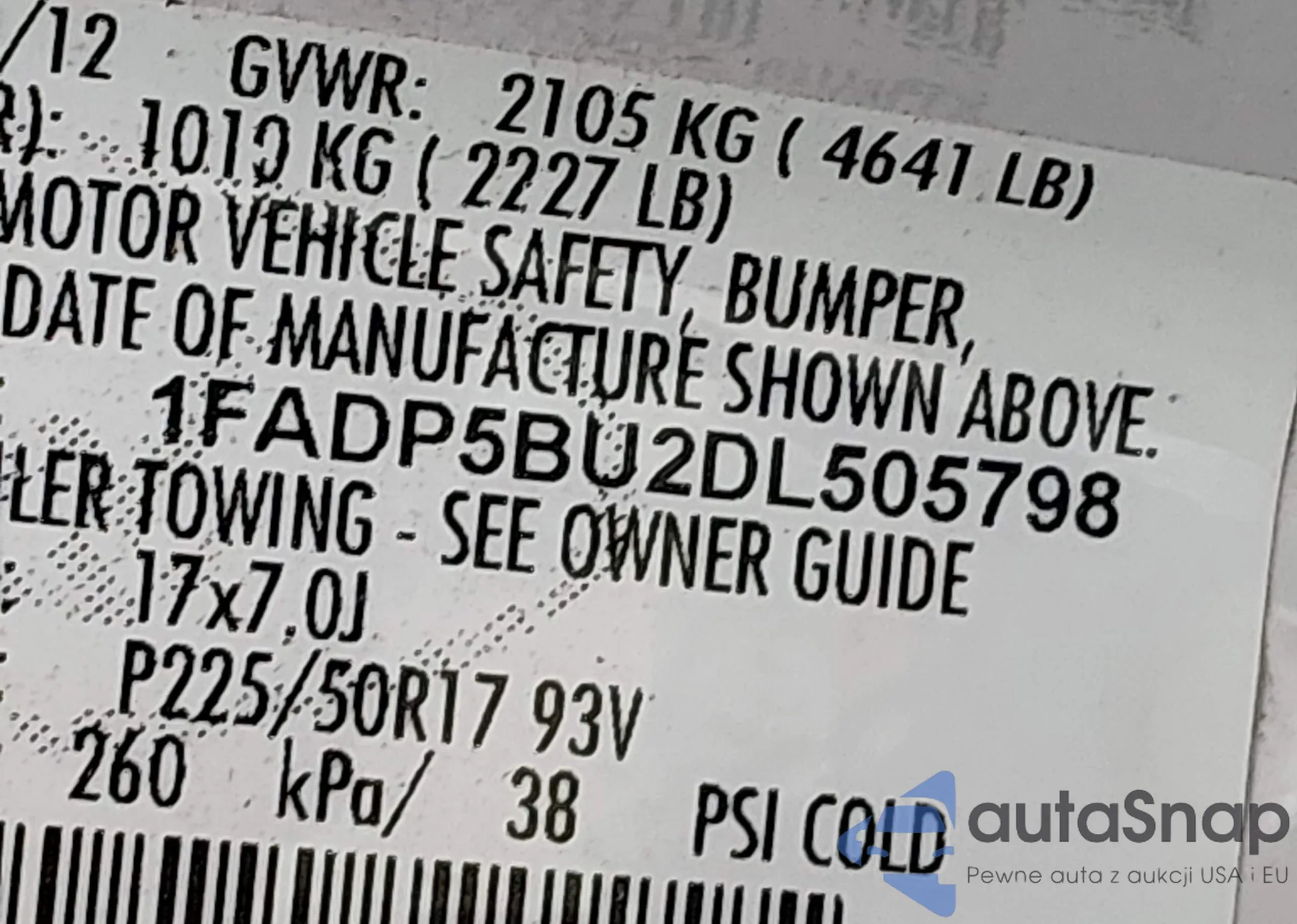 • VIN: 1FADP5BU2DL505798